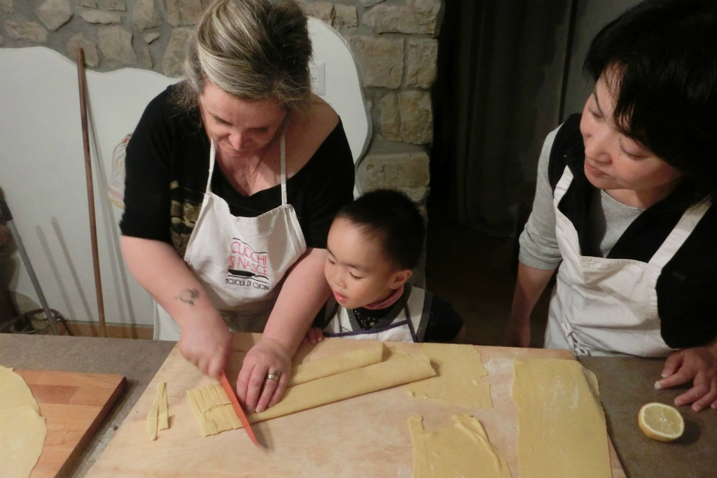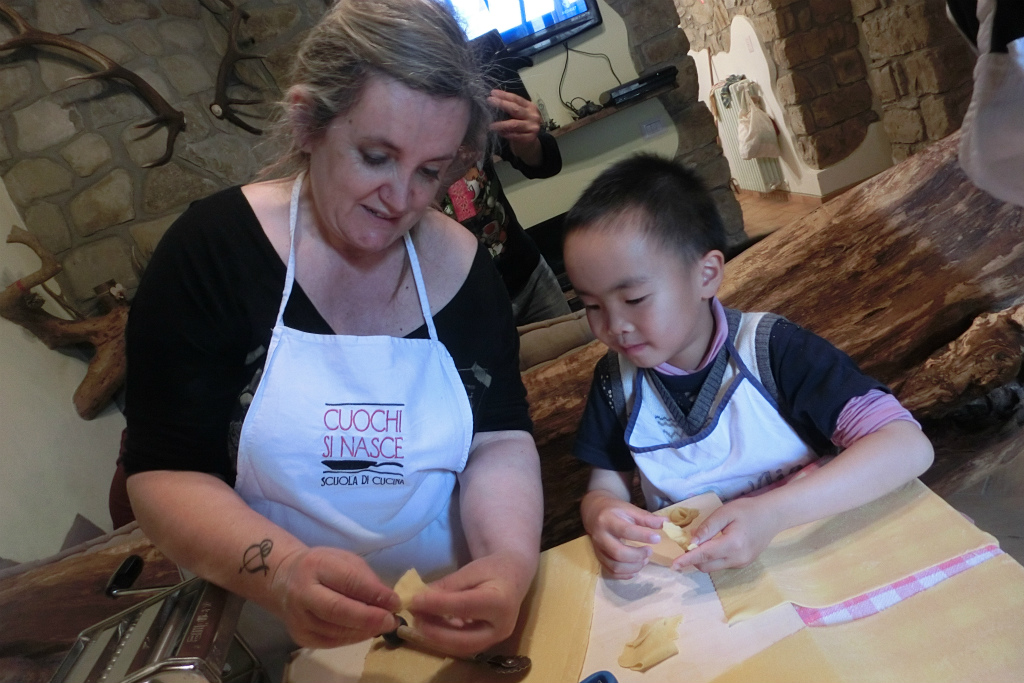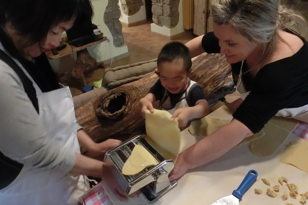 GWは2組のお客さまのコーディネイトとアテンドをさせて頂きました。1組目のお客様は、6才の息子さんがいらっしゃるご家族。有名都市観光の合間に田舎でゆっくりしたい、ということで様々なご希望をお聞きし、落ち着いたのがおらが村の休暇の家。そのハイライトが、ダニエーラの料理教室です~昨年に初めてお子様の料理教室をしたのですが、12月に女の子2人、今回で3回目になります。