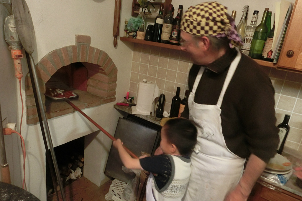 もちろん石窯に入れるのだって・・・これを数枚焼いたら食べに行くよ~ってことだったのですが、いったん席に戻って少しだけ食べ・・・もう一度厨房に戻り・・・これにもどっぷりハマったようで、フランチェスコが手を貸さずとも、最後は全部1人でやれるようになったとか!子供の「やりたい」「やり遂げたい」パワーってすごい!そしてやり遂げたこの経験が、これからの成長にもきっと役に立つはず!