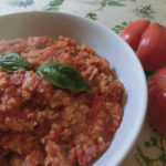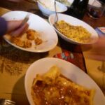 カウンター上に貼ってある黄色い紙が テイクアウト(ASPORTO)のメニュー。実はすぐ右横に40席ほどのトラットリアが併設されているのですが、基本的にメニューは同じ、 トラットリアで出されるものと同じ です。トスカーナ名物のクロスティーニは レバーパテだけでなく、ポレンタフライ&きのこ、生ハム&ゆで卵&グリーンソース、アンティチョークパテ、ポロネギパテ、サルシッチャとパプリカのパテなど、他では見ない種類も豊富。プリモはこの地方名物のトルテッリ・ムジェッラーニ(ムジェッロ地方のトルテッリ、じゃがいもが入ってます)、ストロッツァプレーティ(ニューディとも呼ばれる、リコッタとほうれん草のお団子)とトマト、ラグー、あひるのラグー、きのこソースの組み合わせ、そしてトスカーナ名物リボッリータ。セコンドのオススメは、 うさぎ肉のリピエノ (中にハムや卵が巻かれています)。