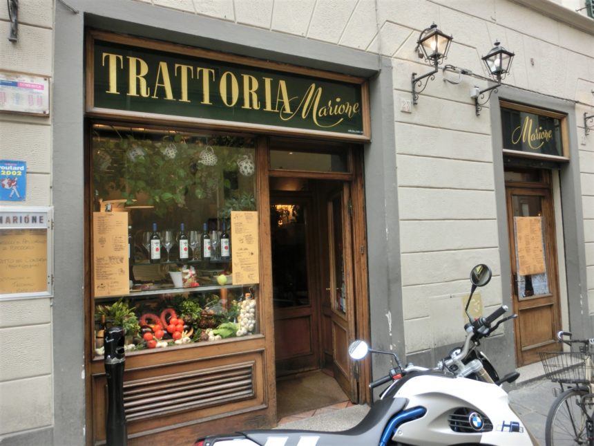 多くて安くてウマい、昔ながらの「トスカーナ料理店」はフィレンツェには何軒もありますが、観光に合わせて各ゾーンで知っておくと便利です。このマリオーネは、ちょうどサンタ・マリア・ノヴェッラ広場からトルナヴォーニ通りやストロッツィ宮殿に行く間、スパーダ通りにあります。ここ、私が留学当時はもちろん、ダンナが一時期バイトしていた=30年前からあるお馴染みのお店。店構えもザ・トスカーナのトラットリア、という感じです。