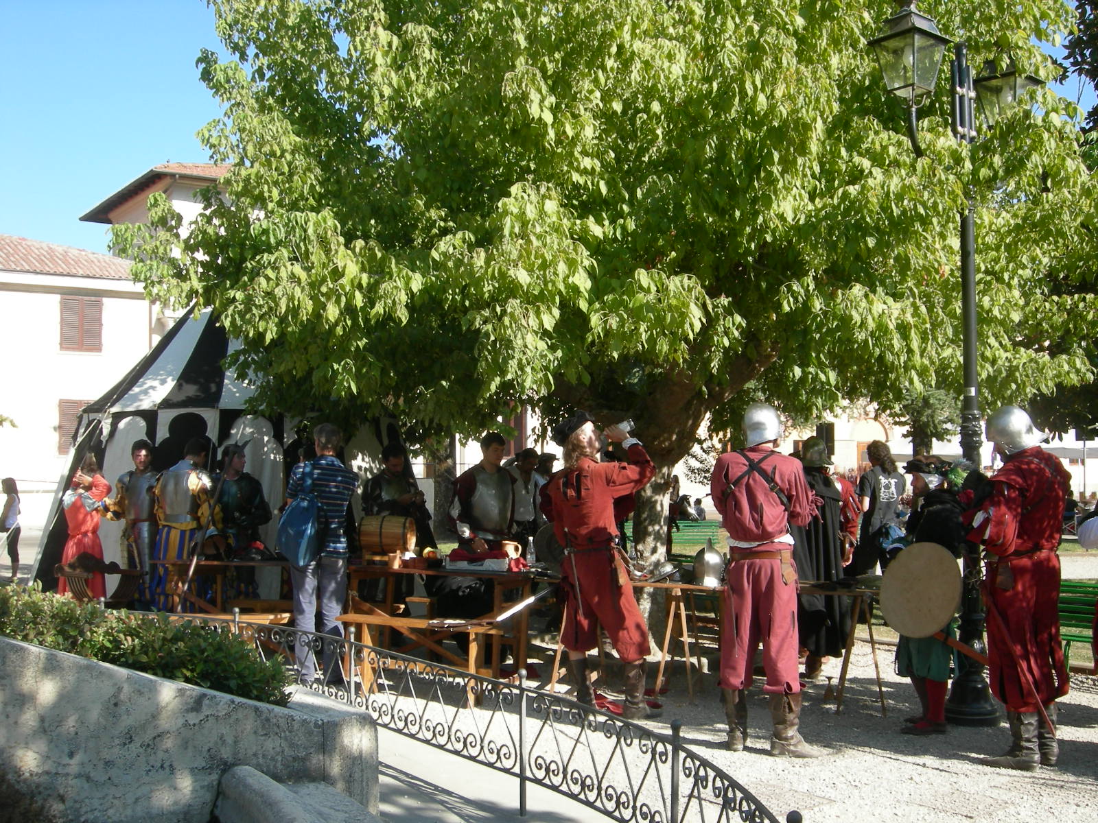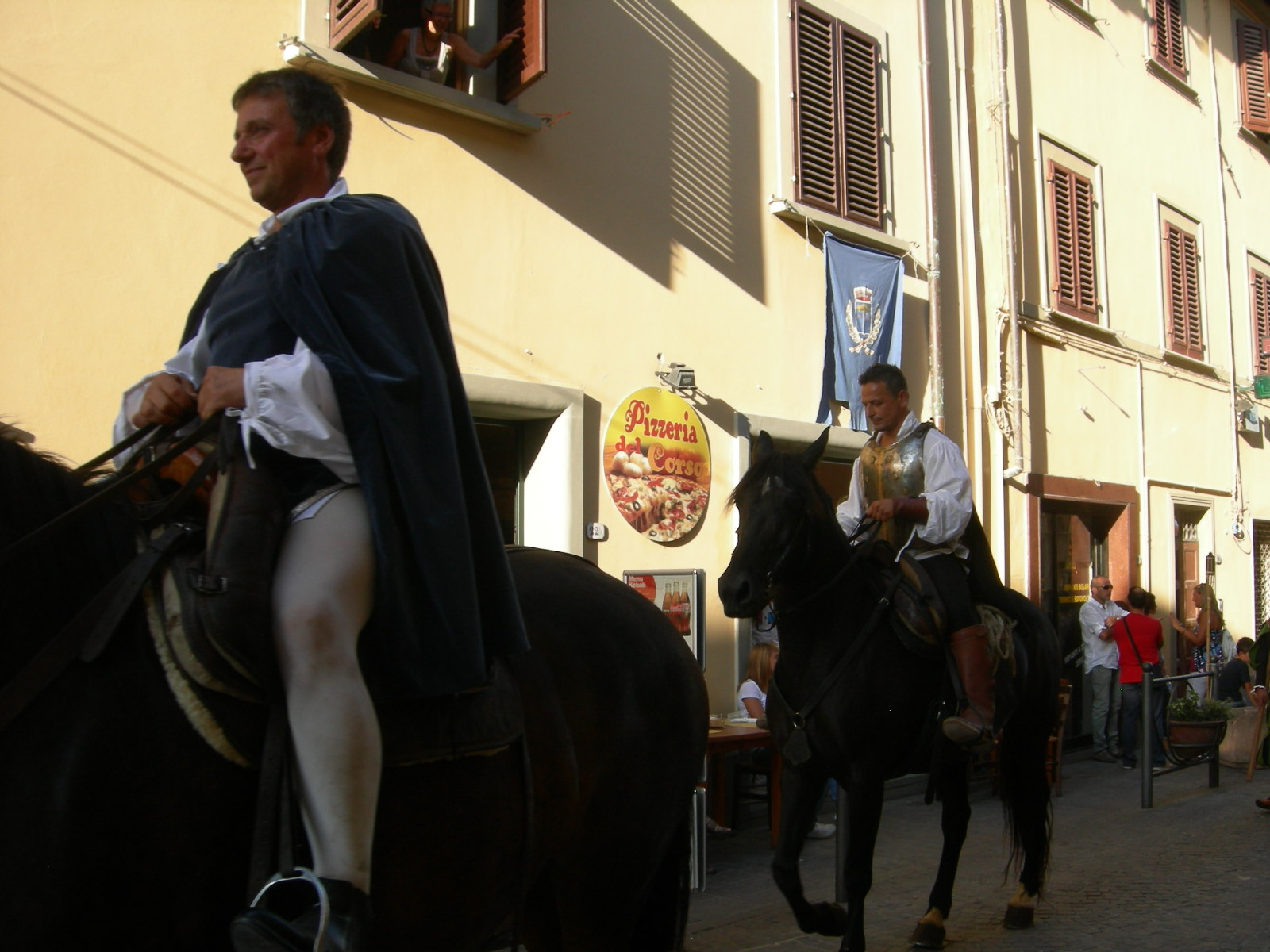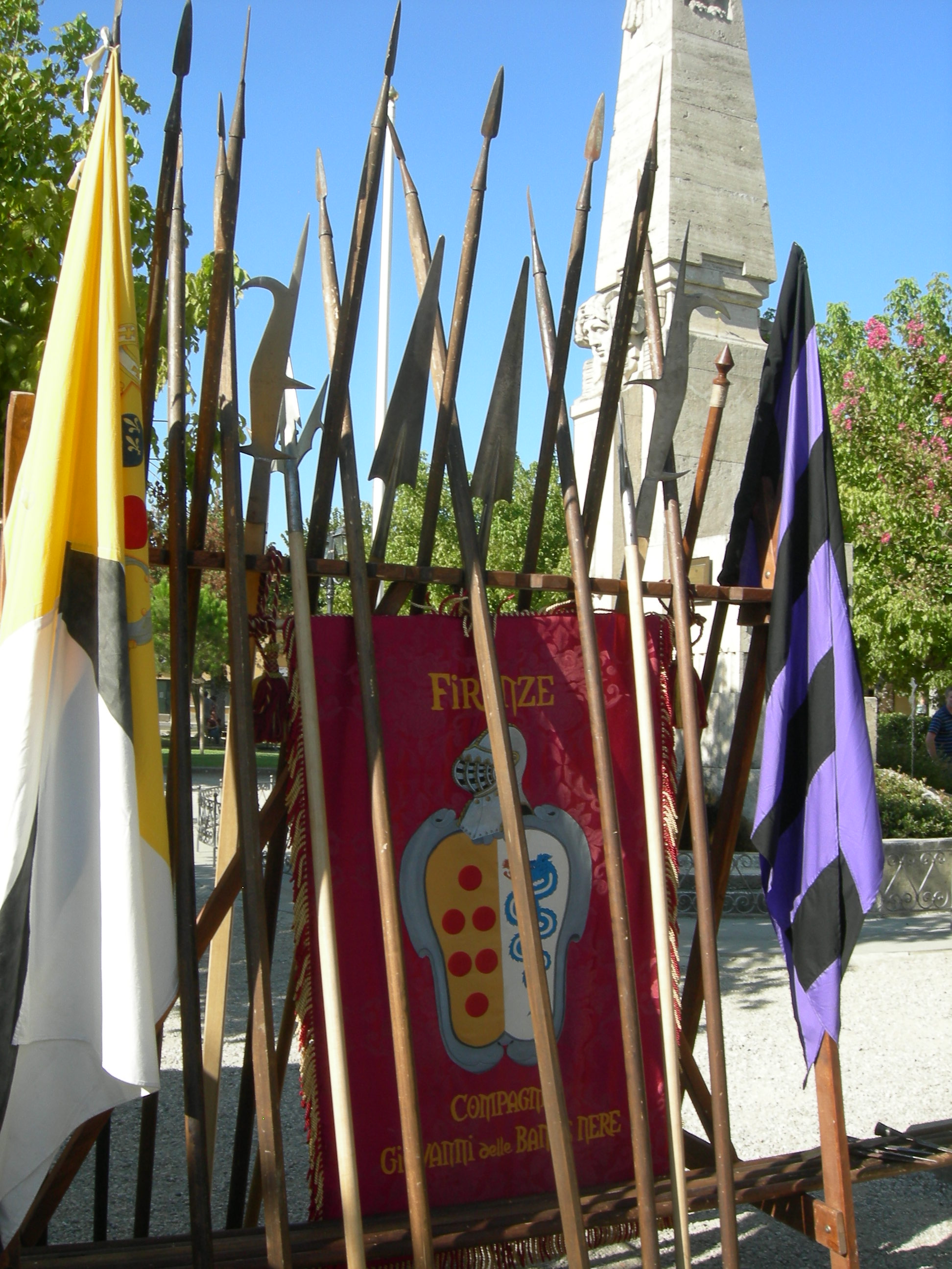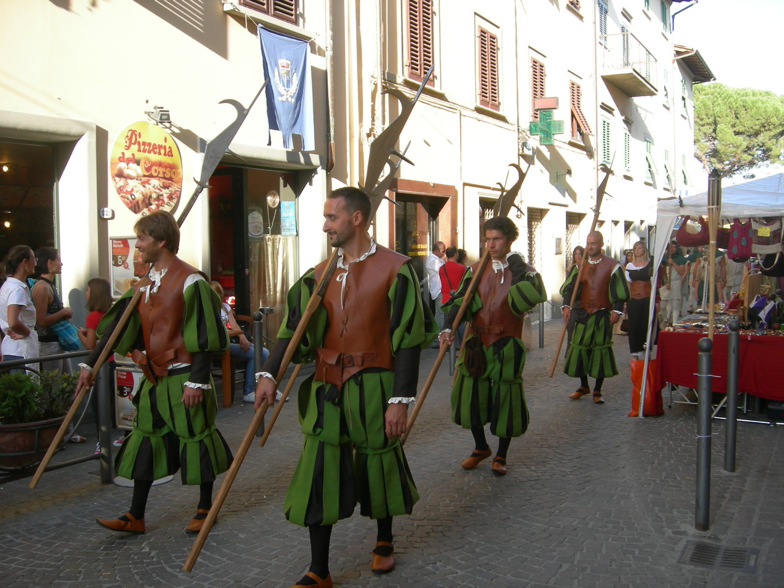 イタリアでは夏、モンテリッジョーニを始め小さな村を中心に中世祭りが行われます。こういったお祭りは行きにくい場所も多いのですが、ここヴィッキオはフィレンツェから直通電車で約1時間、簡単にアクセスができるのが嬉しいお祭り。イベントのサブタイトルは、 Rievocazione Storica=歴史の追憶 、そう 1529という数字は1529年 、この年にこの町で起こった事件に由来しています~1529年、フィレンツェ共和国の忠誠町だったヴィッキオは、攻めてきたスペイン王国軍を前に、数か月も城を守り抜いたとのこと。最後は、大軍のスペイン・砲兵隊の前にたった500名の火縄砲兵はなすすべもなかったようですが、 彼らの精神と強さは今もこの町の誇りとなっているようです。
