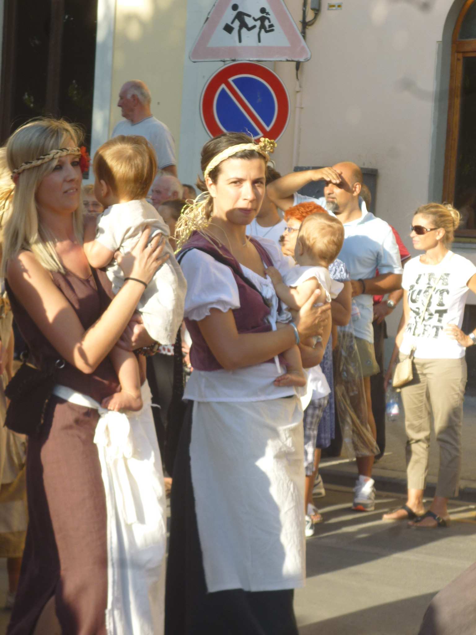 パレードは男爵と貴婦人、兵隊、農民、ブラスバンドなどなど・・・中世祭りはどこも似たり寄ったりだったりしますが、やはりタイムスリップしたみたいでいつ見ても楽しいです。よく見ていると、子供の参加も多く、おそらく家族で丸ごと参加?赤ちゃんもたくさんいてパレードの最中に寝ちゃってたり、ほのぼの感が満載です。その様子は、下のギャラリーでたっぷりご覧くださいね。