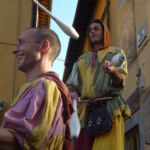 お祭りは駅から10分ほど離れた旧市街。中心にあるジョット広場ではいろんな屋台が出たり、大道芸人のショーが繰り広げられています。そこから更に大きいヴィットーリア広場に移動中、ここにも道を阻む大道芸人がおり、子供も大人もキャッキャと喜び芸人とのやりとりを楽しむ場面も。外国人観光客はほとんど(いや皆無?)おらず、地元や近郊の家族連れでにぎわう雰囲気も楽しいですよ。