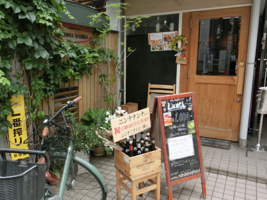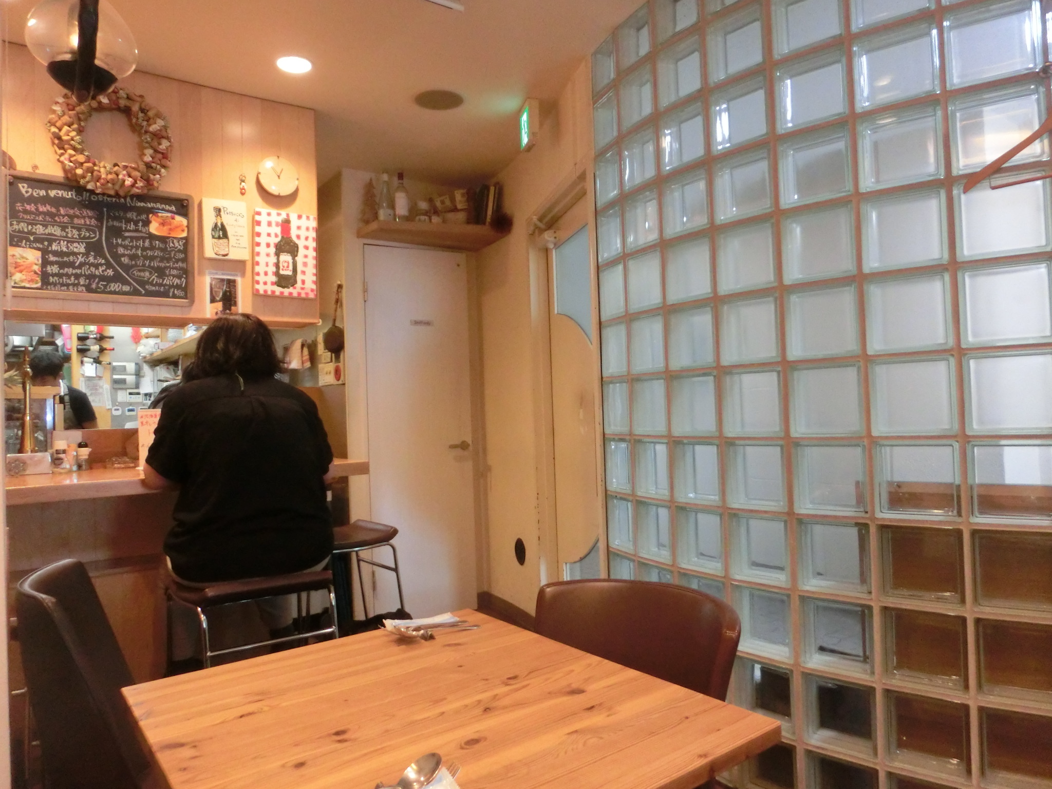 大阪のオフィス街、堺筋本町にはためくイタリアの旗が目印の、ニンナナンナさんです。お店の名前、ニンナナンナはイタリア語で「子守歌」という意味。1人でもカップルでも家族でも、誰でもくつろいでほしいというオーナーの願いからつけられた名前です。実際、店構えもとてもナチュラルで入りやすい!右側はガラスブロックになっていて、狭いながらも明るく居心地が良い空間になっています。