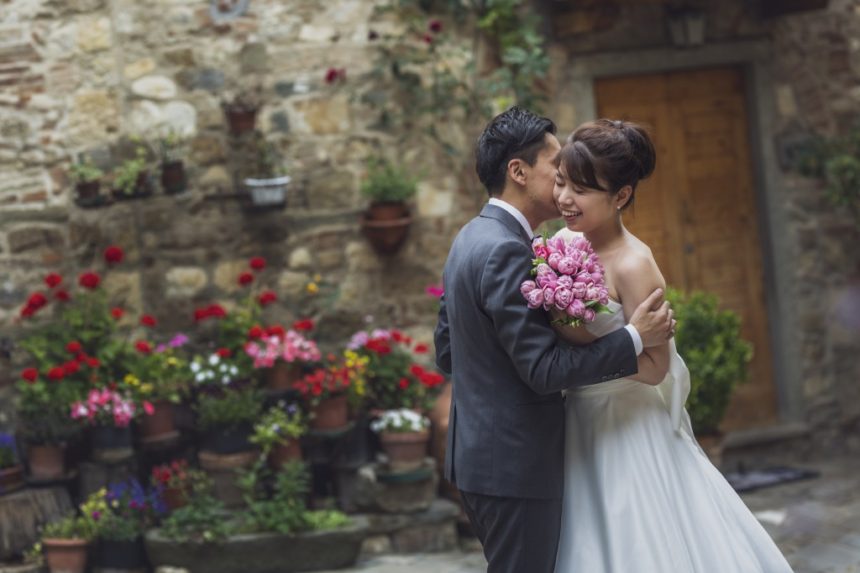 6月某日、かねてよりコーディネイトさせて頂いた「トスカーナ・ウェディングフォト」の撮影を行い、写真がフォトグラファーより納品されましたので、ここにも少しだけUPします~トスカーナでウェでイングフォトの王道は、やはりフィレンツェなのですが、今回のお客様は「人混みは嫌、人に見られたくない」ということで、「フィレンツェから近い&観光客のいない小さな村、トスカーナらしい景色」とのご希望で、キアンティの小さな集落・モンテフィオラッレと、その周辺のブドウ畑や糸杉並木で3時間の撮影でした。