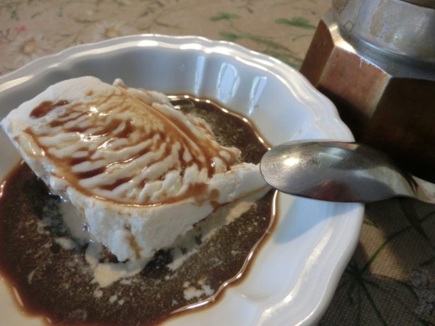 今日は市販の生クリームのジェラートに、朝沸かして余っていたカッフェを注いで。カッフェに少し溶かしながら食べると、これがとっても美味しいのです♪