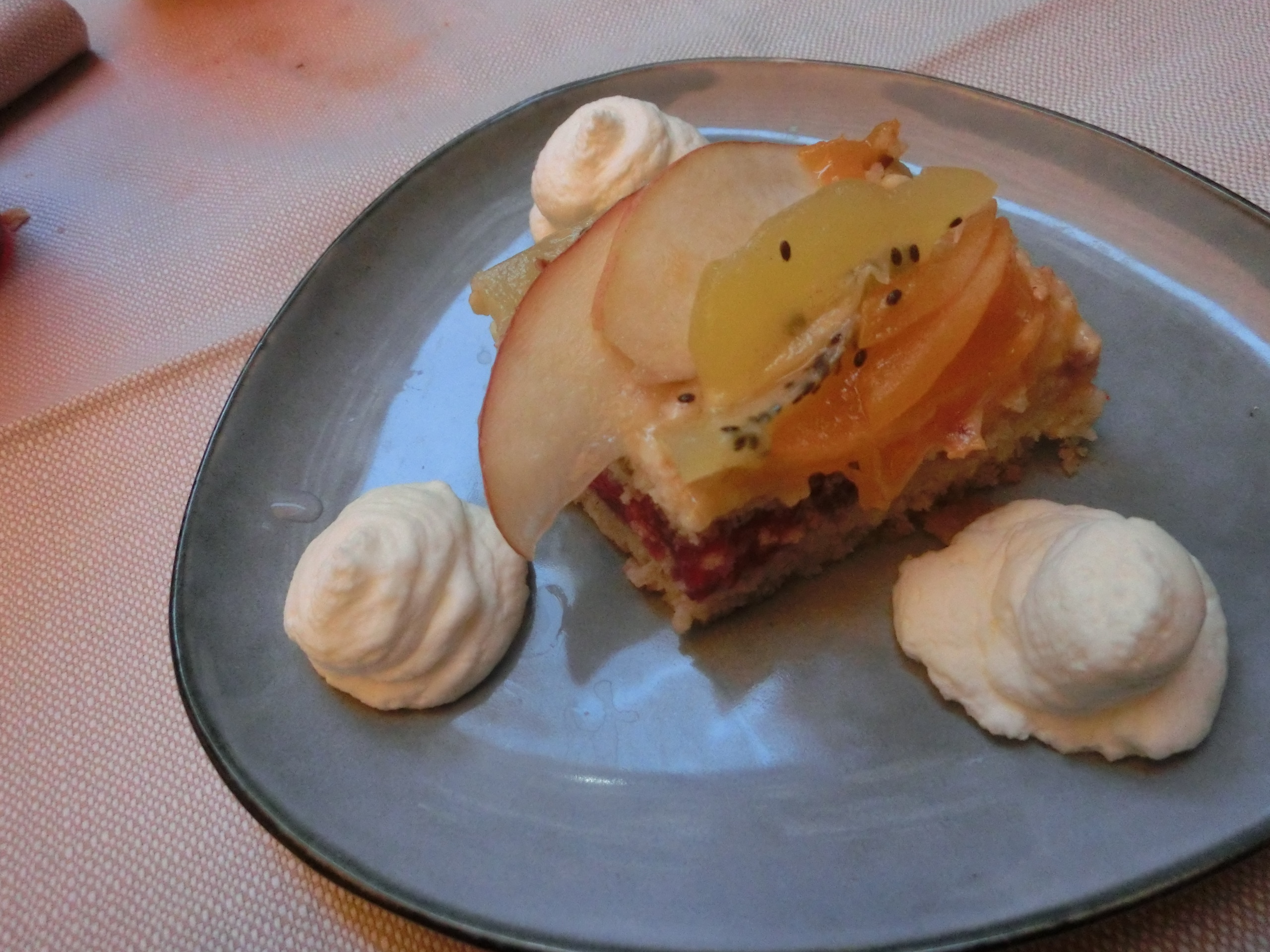 でもせっかくの外食なので、デザートも。自家製デザートはどれも甘さ控えめで、私のフルーツタルト、ダンナのリコッタのムース、次男のチョコレートムースも美味しかったです。価格はリゾート地という事もあり、我が家の平均外食価格よりはやや高め。水、3皿、デザート3皿、カッフェ2杯で約80ユーロでした。