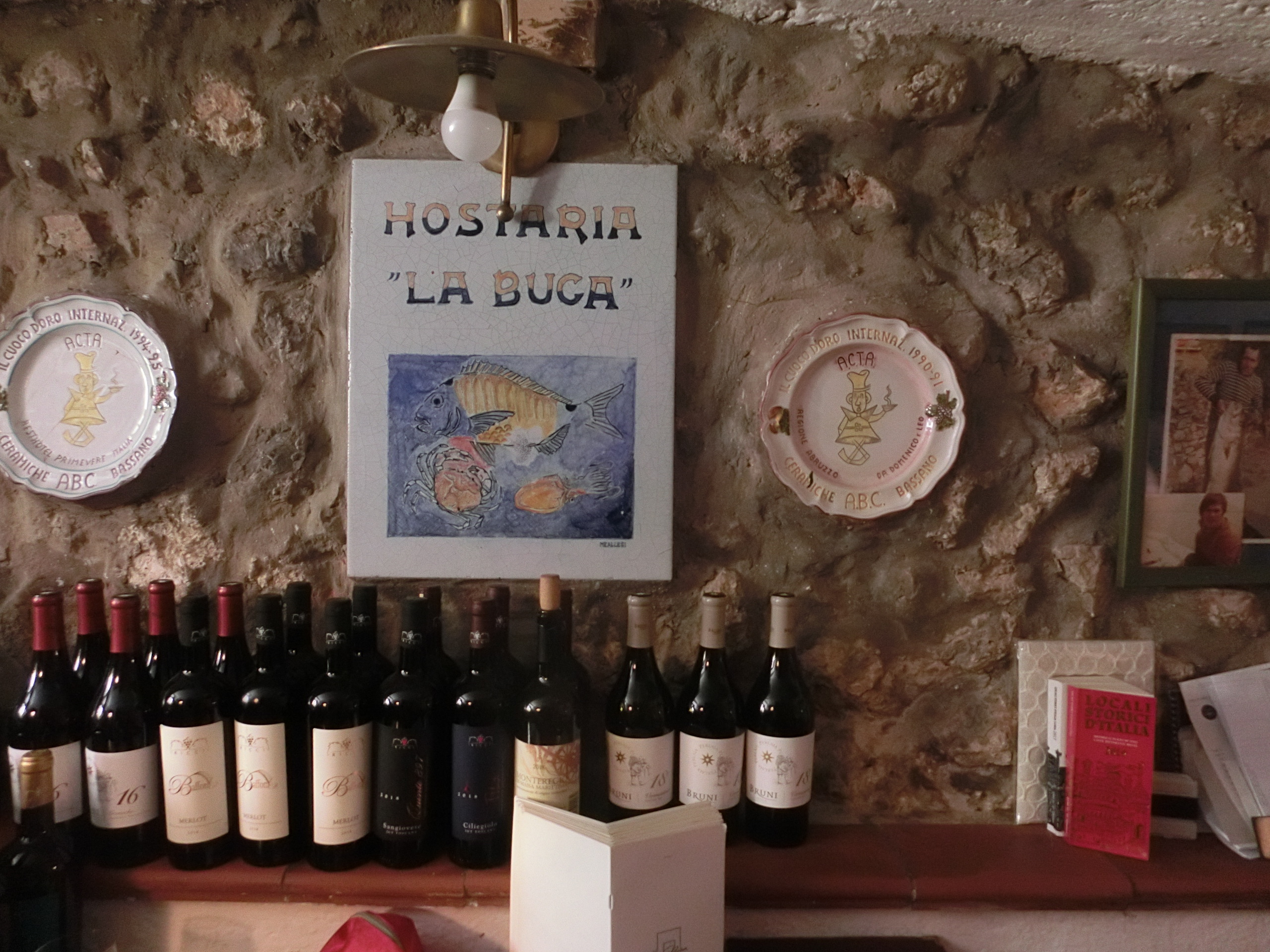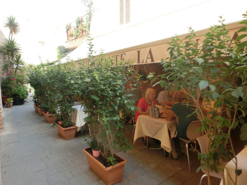 マレンマ地方の海に突き出た半島の小さな村・タラモーネ、ランチはガリバルディ門を入ってすぐのレストラン・La Bucaに行くことにしました。本当に小さな村なので、旧市街にはレストランは4~5軒。チェックしていたもう1つのレストランが閉まってたから、というのもあるのですが、ここを選んだのはやはりロケーション。城壁沿いという雰囲気は、やはり気分が盛り上がりますね!