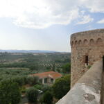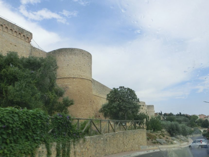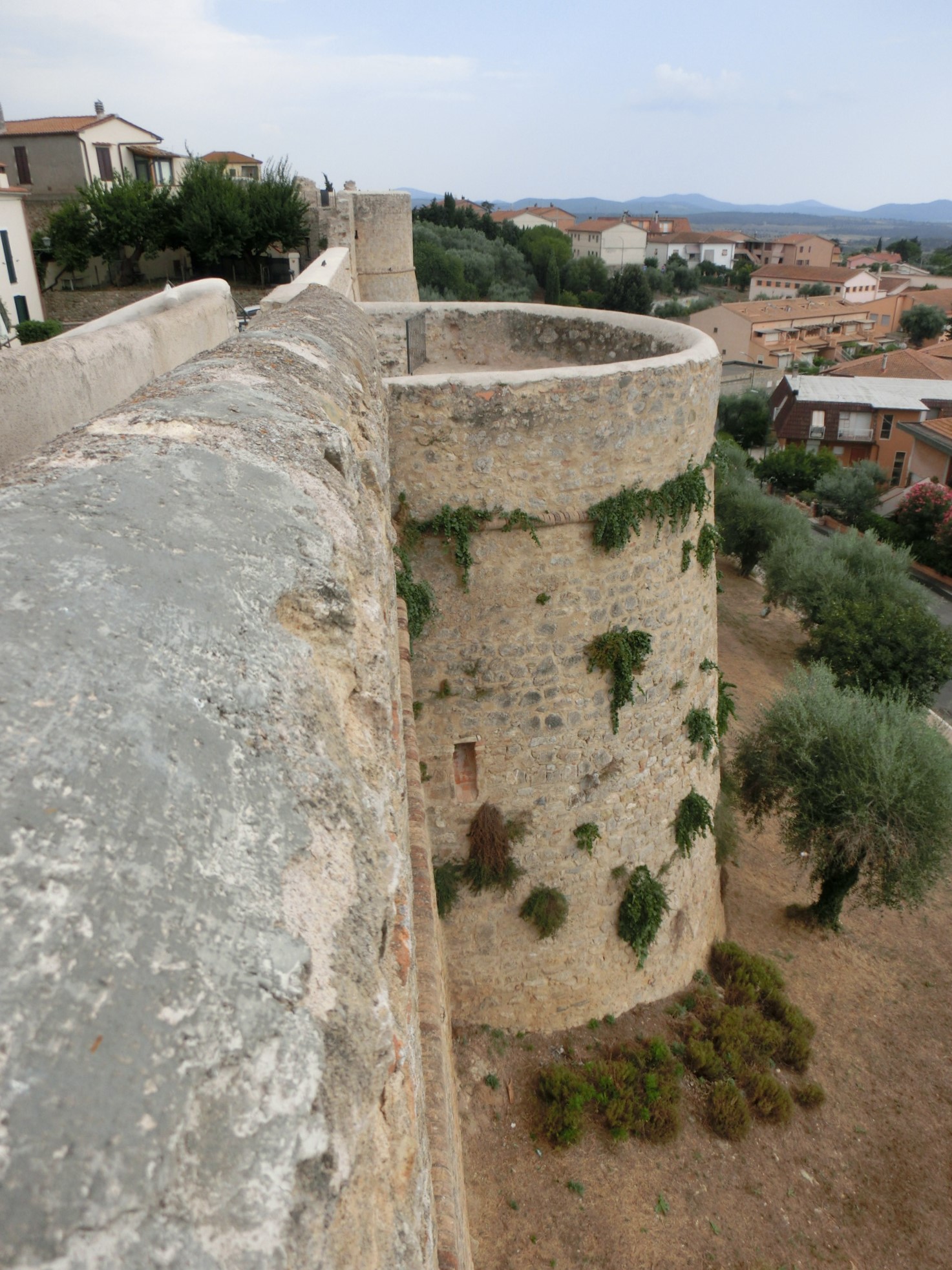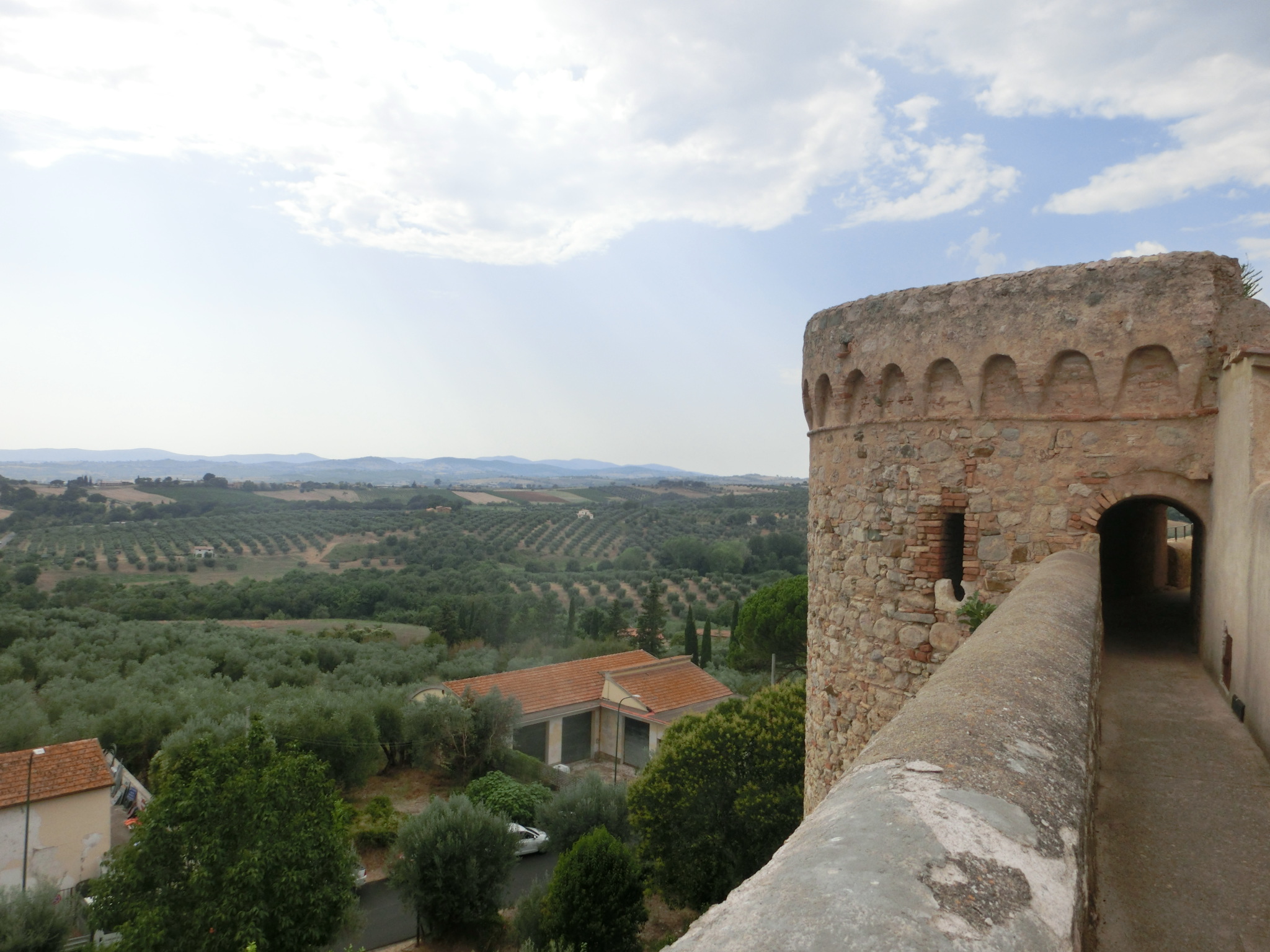 ここから見えるのは、荒涼としたマレンマの大地、数えきれないオリーブの木。そして天気が良ければ、ティレニア海やモンテ・アルジェンタリオ、ジリオ島まで見渡せるそうです。城壁の上は整備されて歩きやすくはなっていますが、ご覧のように壁は大人の腰までしかない個所もあるので特にお子さんはお気を付けください。