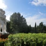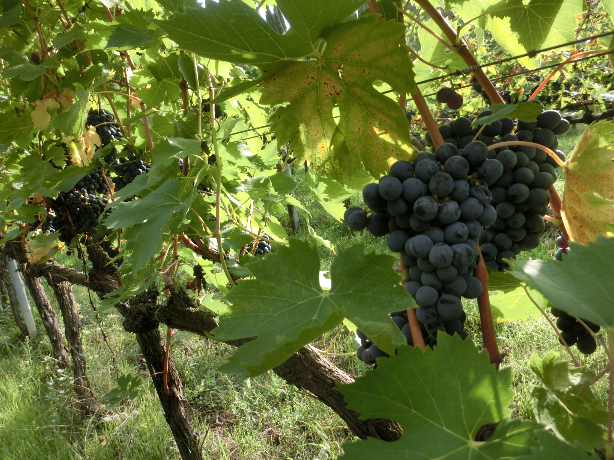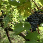 並木道を上っていく右側は、今も続くワイン製造のためのブドウ畑が。訪問したのが9月末だったので、収穫をまつブドウがたわわに実っていました。