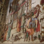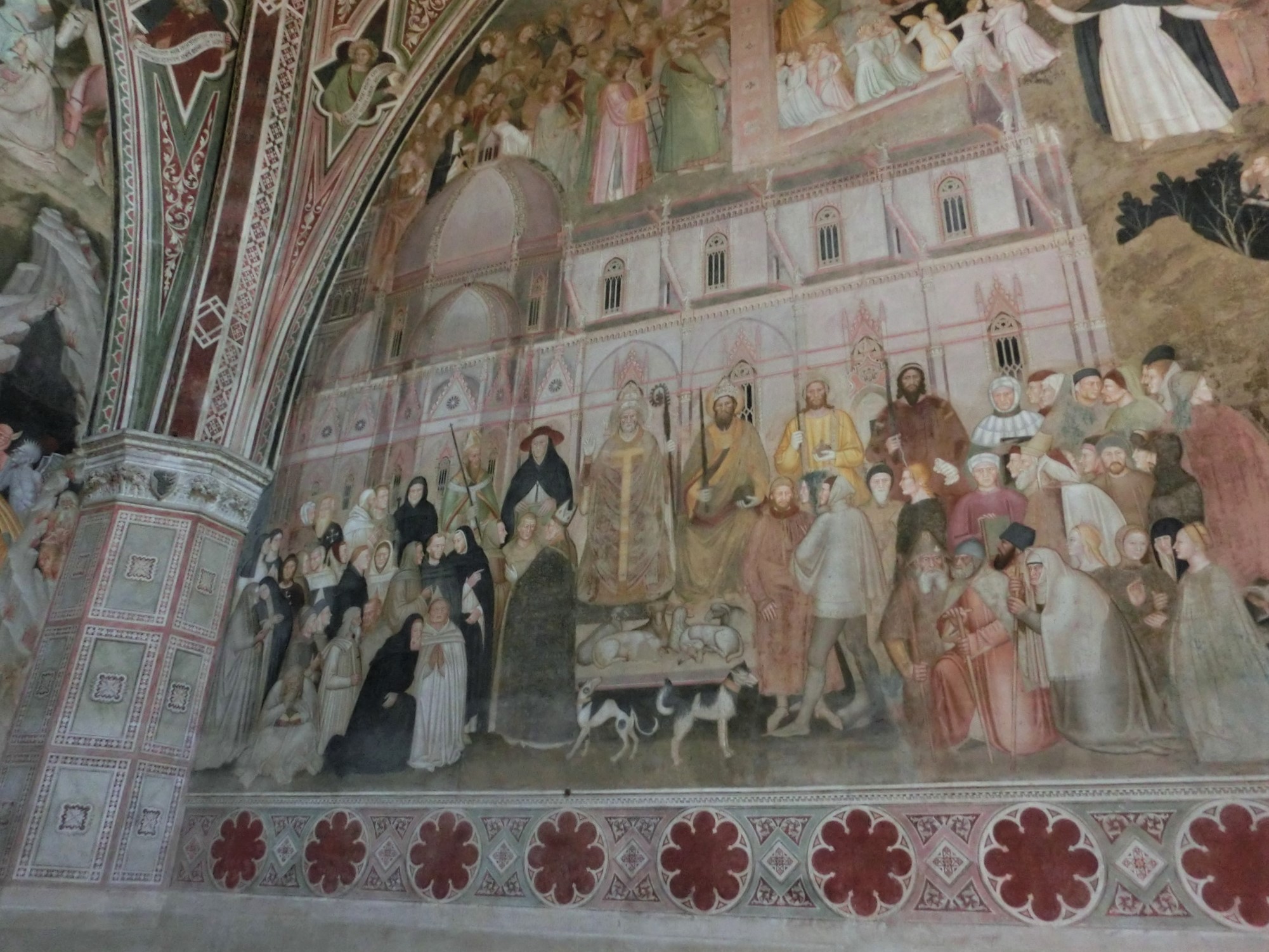 チケットは展覧会だけでなく、サンタ・マリア・ノヴェッラ教会の内部全てが見学できます。これはお墓が並んでいることから名づけられた「死者の回廊」。1300年前後のフレスコ画に覆われた空間は、時が止まってしまったかのよう。