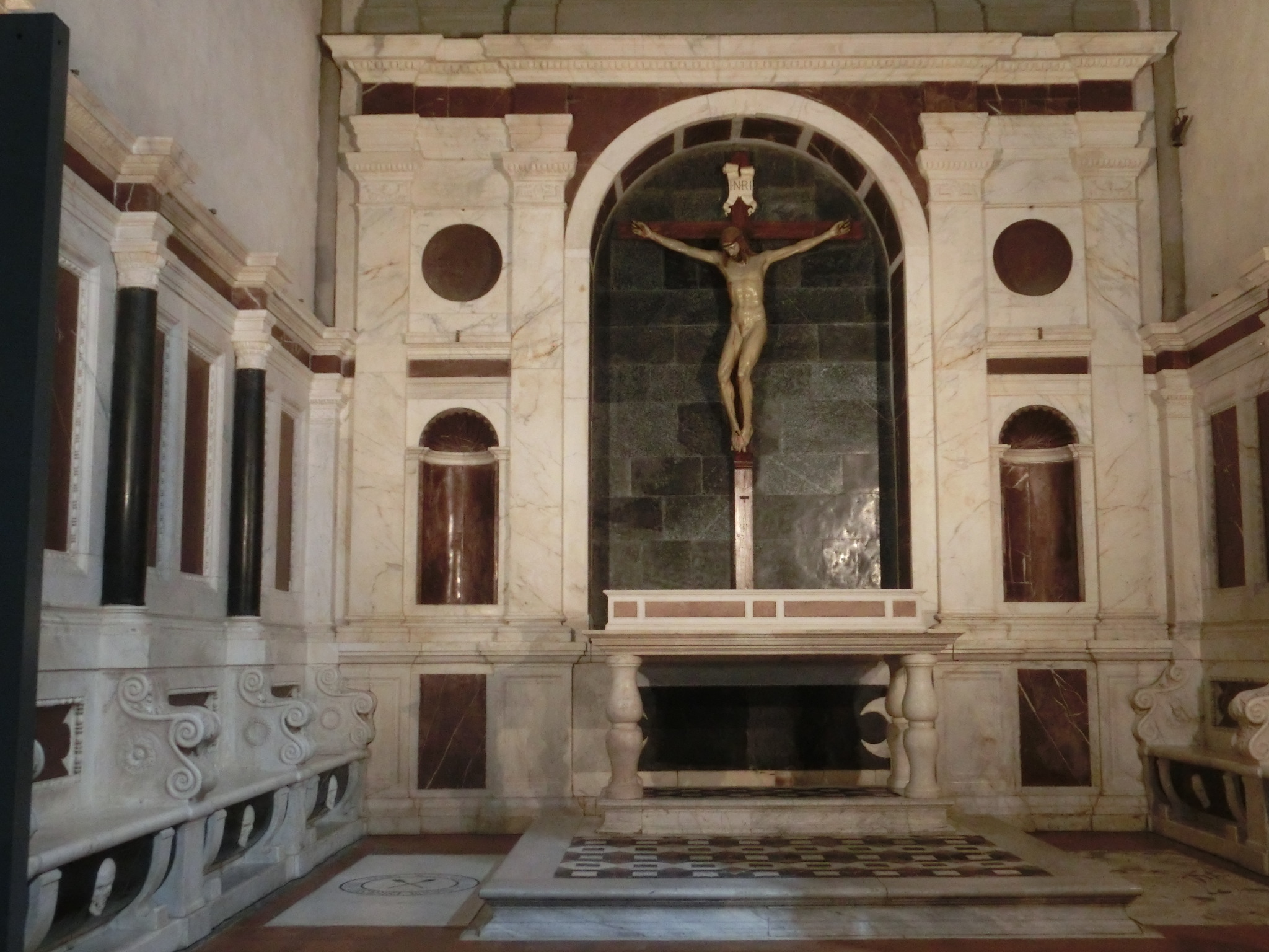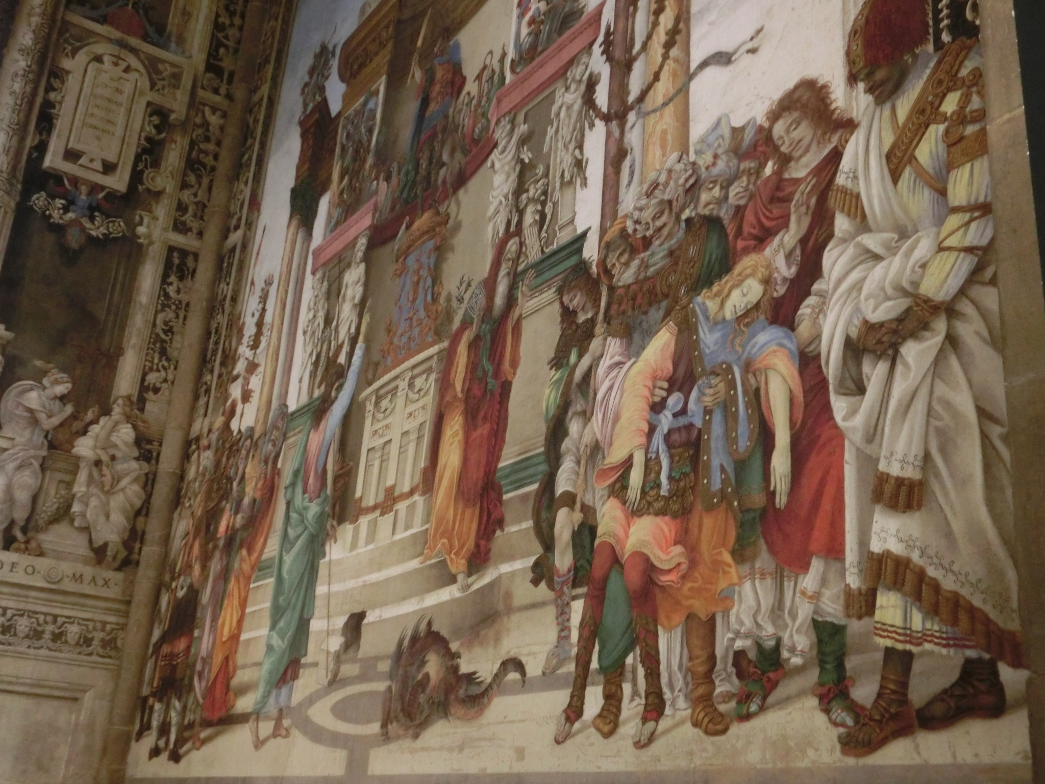 元々は教会左横にある緑の回廊にあった、パオロ・ウッチェッロのフレスコ画が近年修復され、奥のRefettorio(食堂)に展示されているのもお見逃しなく。その他、スペイン人の大礼拝堂も迫力のある大型のフレスコ画が見応えあります。