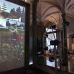 自然観察は芸術のための表面的なものかと思いきや、木の年輪についての考察もしているのです。写真は、横にある年代の書いたボタンを押すと、木の断面図のその年の年輪が光り、その年の出来事が映し出させる仕掛けに。