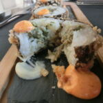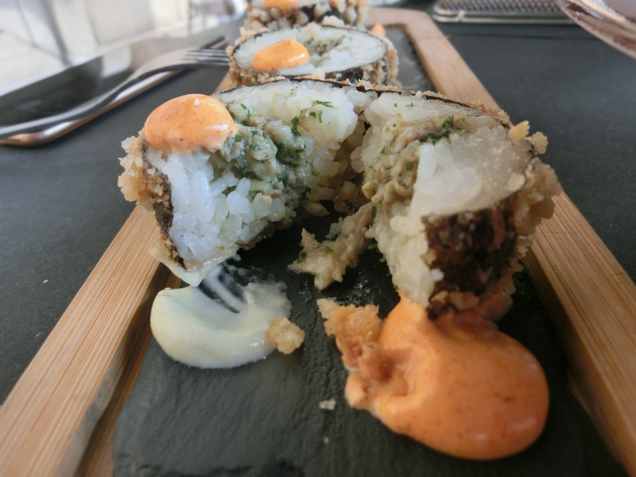 そしてランプレドットロール・・・「ロール」は「肉巻き」の意味だと思ったら、なんと「巻き寿司」だったというサプライズ(笑)。中のランプレドットは細かく切ってあるのでイマイチ何か分からないですが、具と酢飯のしっとりに、揚げた海苔との食感も良く、スパイシーソース&マヨネーズで、巻き寿司とは全く別の食べ物として美味しかったですよ。