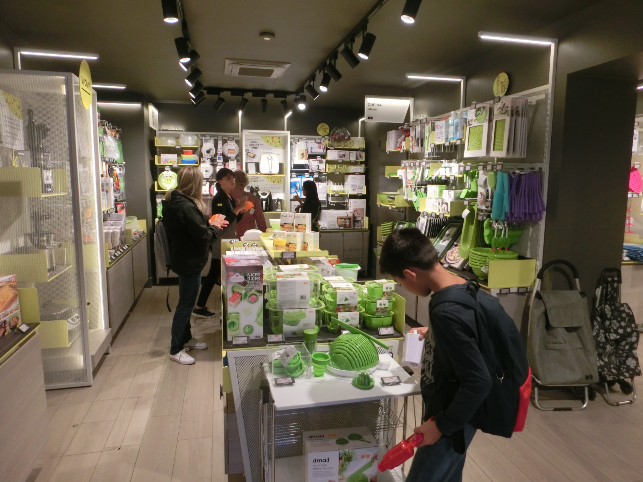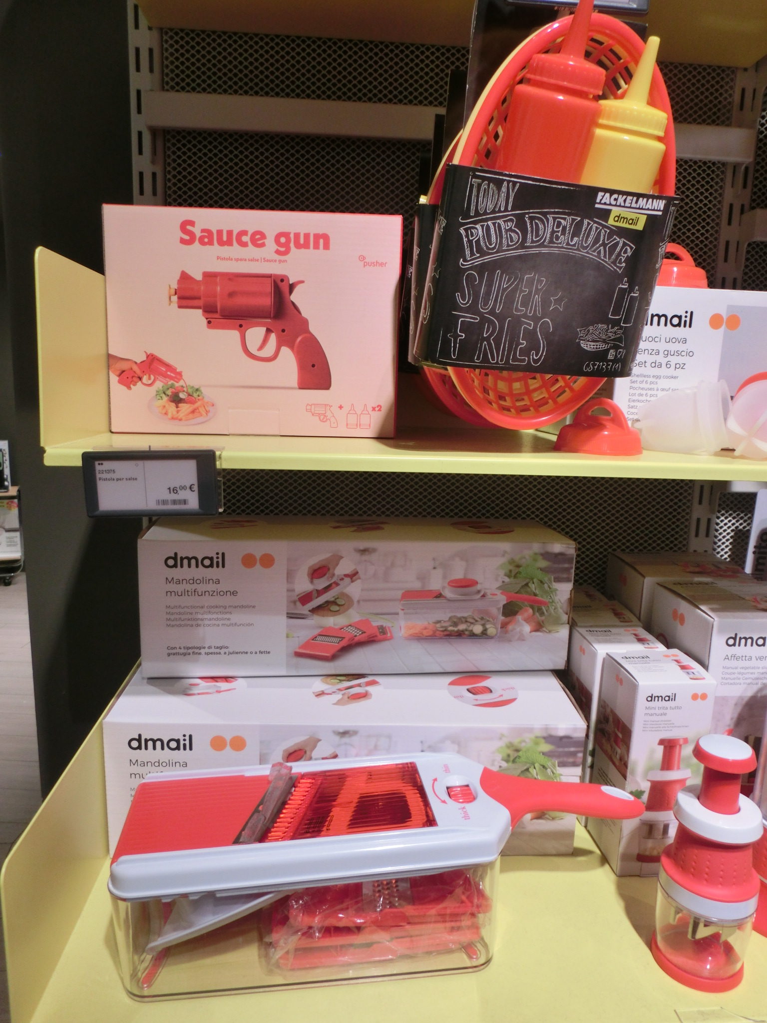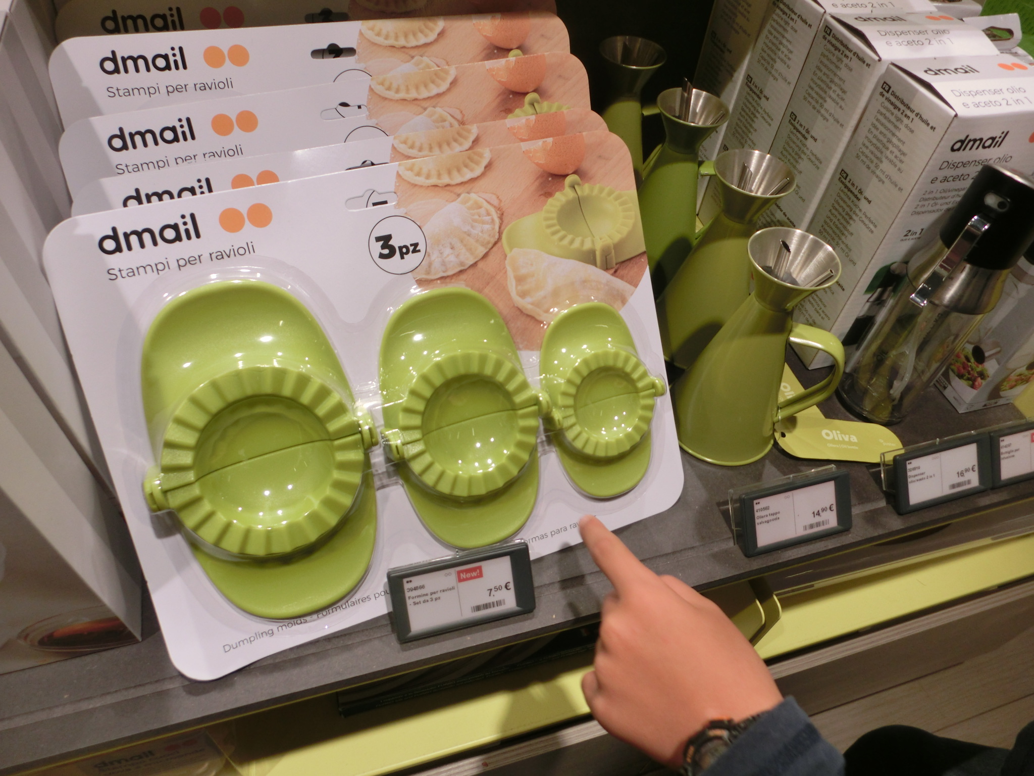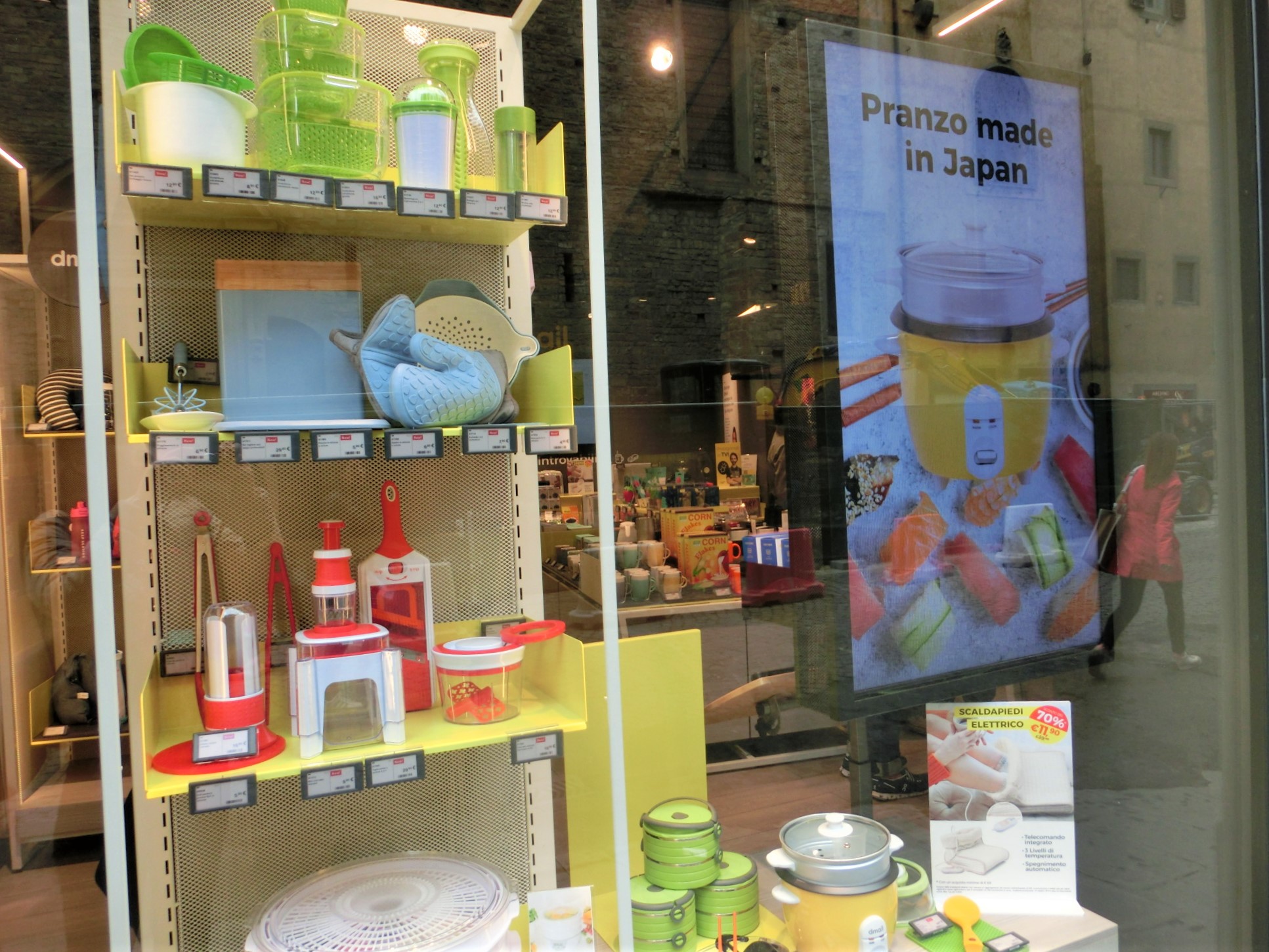 イタリアだけにピッツァ関連商品も多々(笑)。コンセプトは「便利なアイディアで今までなかったもの」、日常生活の中であったら便利な機能商品を、なんと1か月100アイテム出しては入れ替えているそう!確かに、主婦である私が行くと、いやぁ、もう欲しくなる商品が山ほどあって危険、危険。
