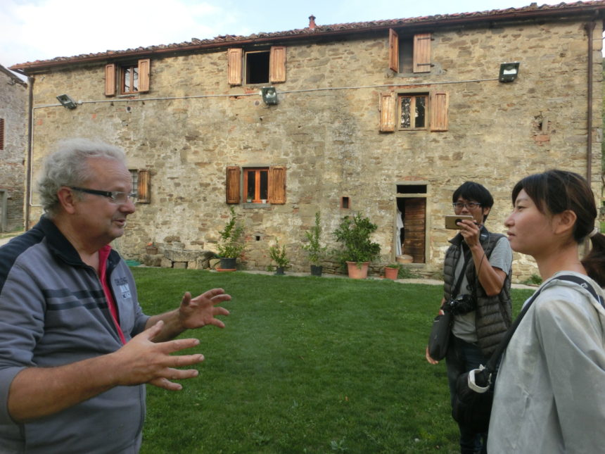 今回ご依頼をくださったのは、福岡県糸島の卯(うさぎ)農園さん。個人や飲食店に、オーガニックの野菜や加工品を届けていらっしゃいます。1泊2日の日程で、まずはフィレンツェで市場やオーガニック専門店などを見学した後、電車で1時間弱+送迎車で15時半頃に農家に到着。お荷物を置いた後、早速、施設や畑の見学に向かいました。