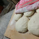 見学が一通り終わると、料理教室へ。メニューはリクエストに対応できますが、卯(うさぎ)農園さんはピッツァと旬の野菜を使ったお料理という事で、まずはピッツァの生地を仕込みます。見学前に捏ねて1次発酵の終わった生地を、1枚分に丸めて2次発酵へ。料理教室のメインは奥さんのアンナさんです。