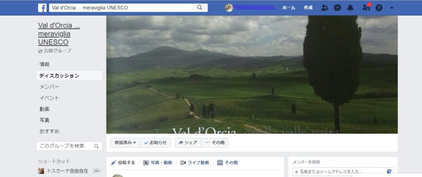こちらはFBページでなくコミュニティなので、メンバーからの投稿で成り立っています(それゆえ、埋め込みができませんでした)。参加に承認は必要なかったので、見る専用でメンバーになっても良いですね。メンバーが撮影した写真や、前述のPaadiso…ToscanaやValdorcialife、他のFBページなどのシェアもありますが、メンバー投稿の為、投稿の頻度が高く、プロ?アマ?の写真家さんの投稿もありますよ。