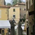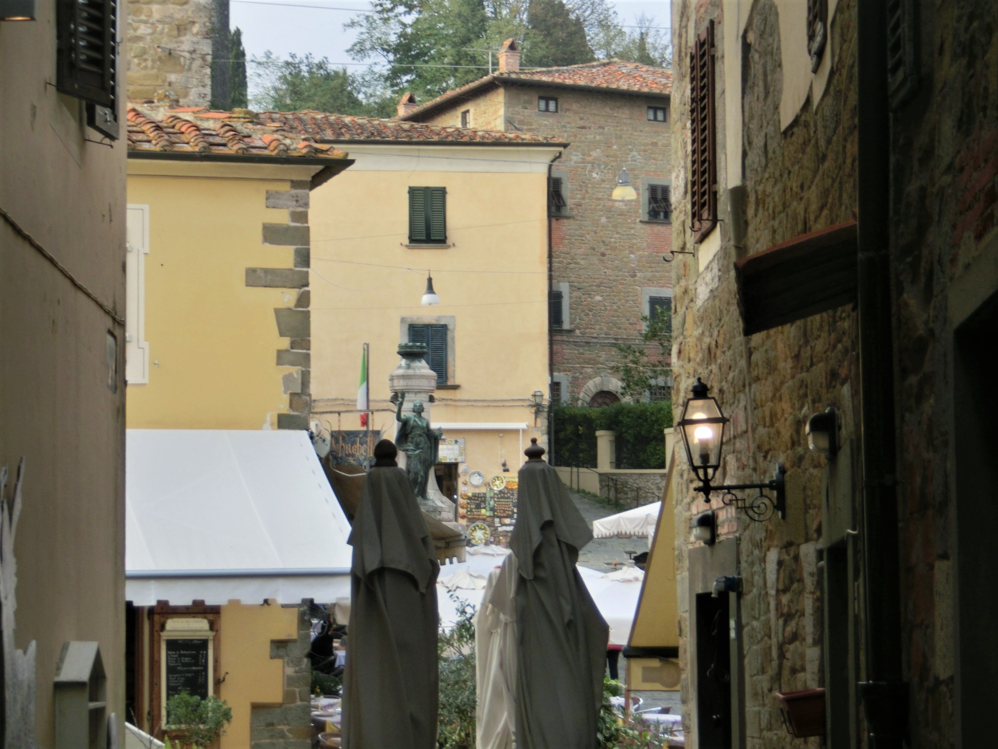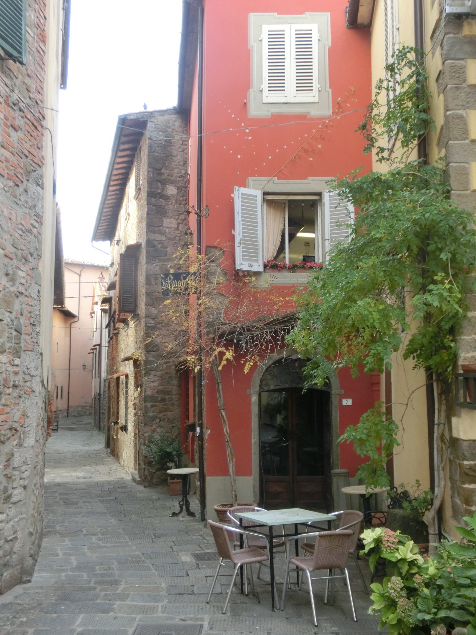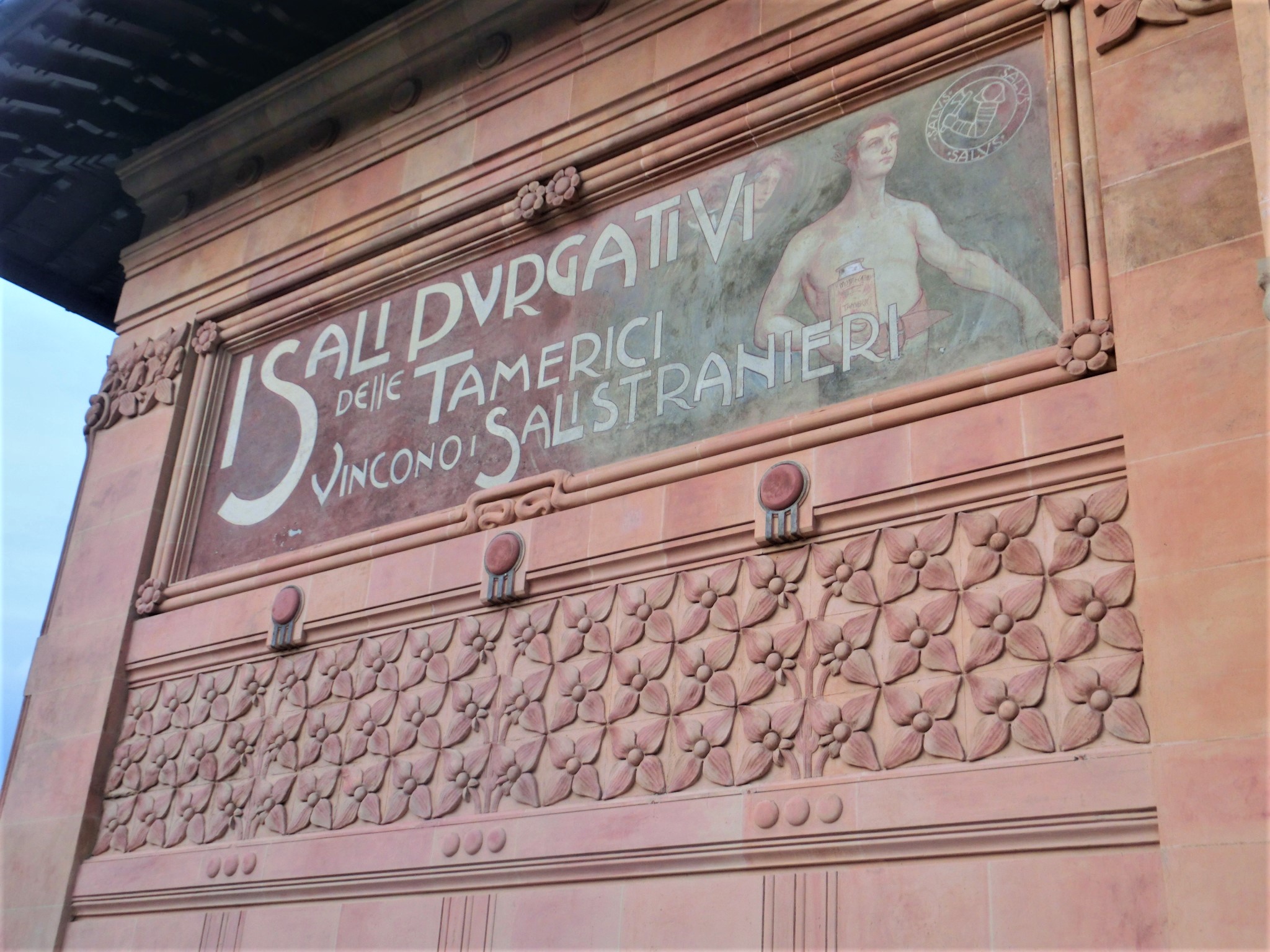 大きなモニュメントは他にありませんが、こんな風に路地で出会うマリア様や、古の家紋など、歴史を感じるものがあちらこちらに散らばった、隠れた宝石箱のような小さな村。フィレンツェからも比較的アクセスしやすく、沿線上にはプラートやピストイア、その先にはルッカもありますので、どこかと合わせてぜひ立ち寄ってみて下さいね。ギャラリーには、新市街のモンテカティー二・テルメの写真もいくつか掲載していますが、トスカーナで「リバティ様式」の建物が多いことでも有名です。