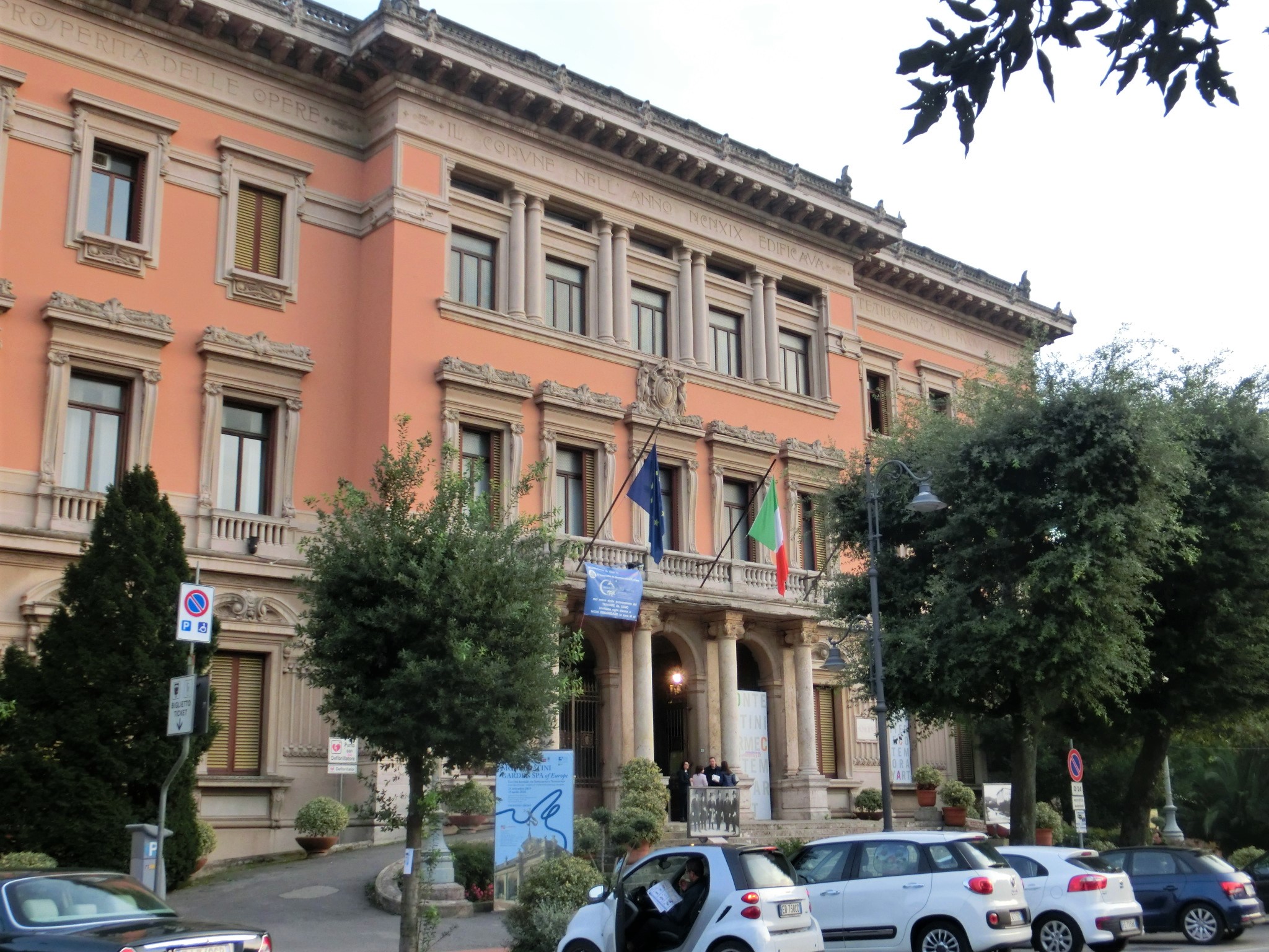 写真は、駅から20分ほど歩いたテットゥッチョから見えるモンテカティー二・アルト、テットゥッチョの裏手からケーブルカーが出てるのでこれで行くも良し(ただし11月~3月末まで休業)、駅からバスに乗っても行けます。ご覧のようにすり鉢状になっており、ケーブルカーが着くのは真ん中の低い場所。ケーブルカー下り場から少し入ると、旧市街の中心でありシンボルでもあるジュゼッペ・ジュスティ広場に出ます。