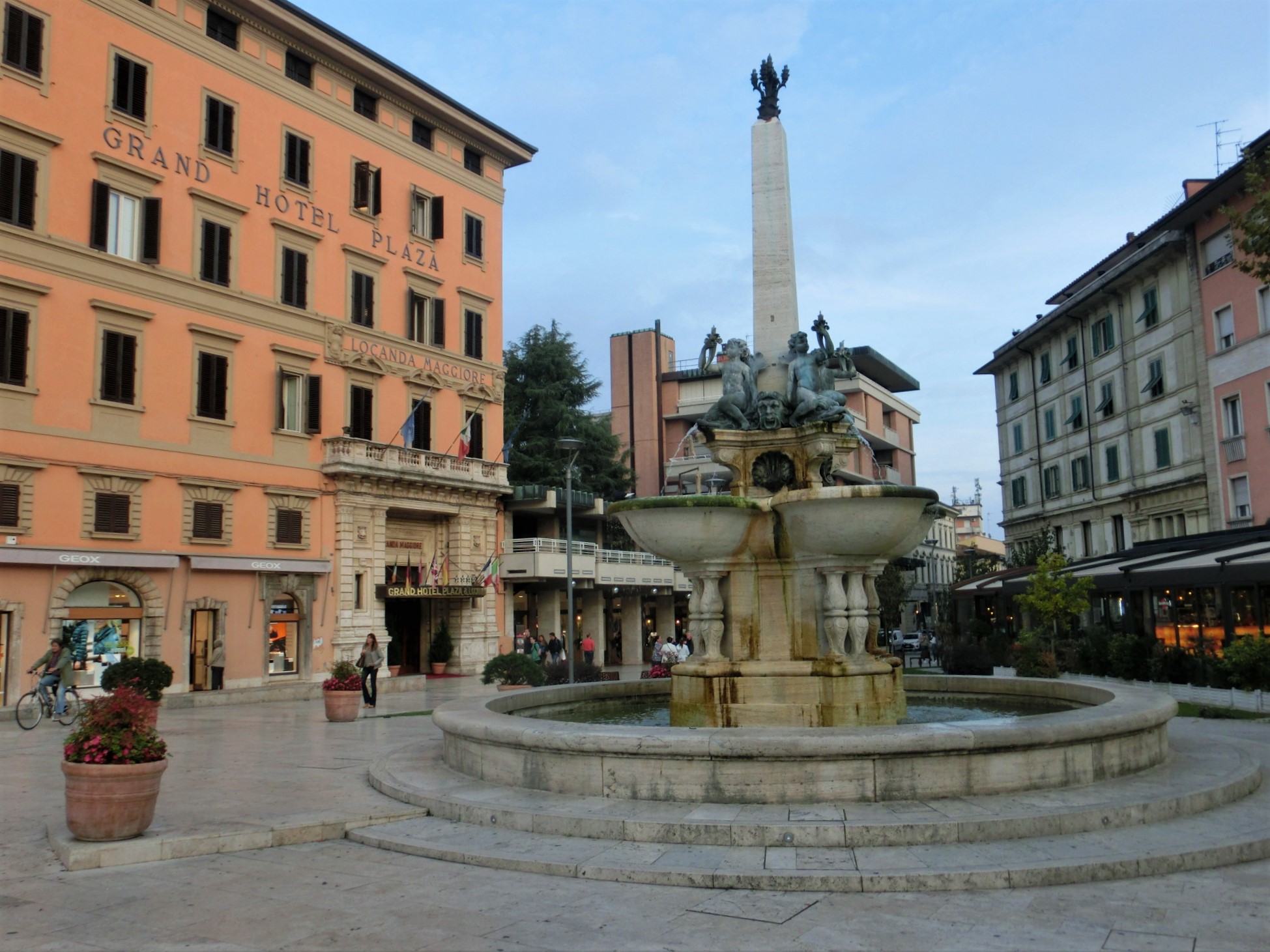 周りはバールやレストランに囲まれ、所狭しとテラス席が広場の脇をびっちり占めています。夏はさぞ賑わって楽しそう!