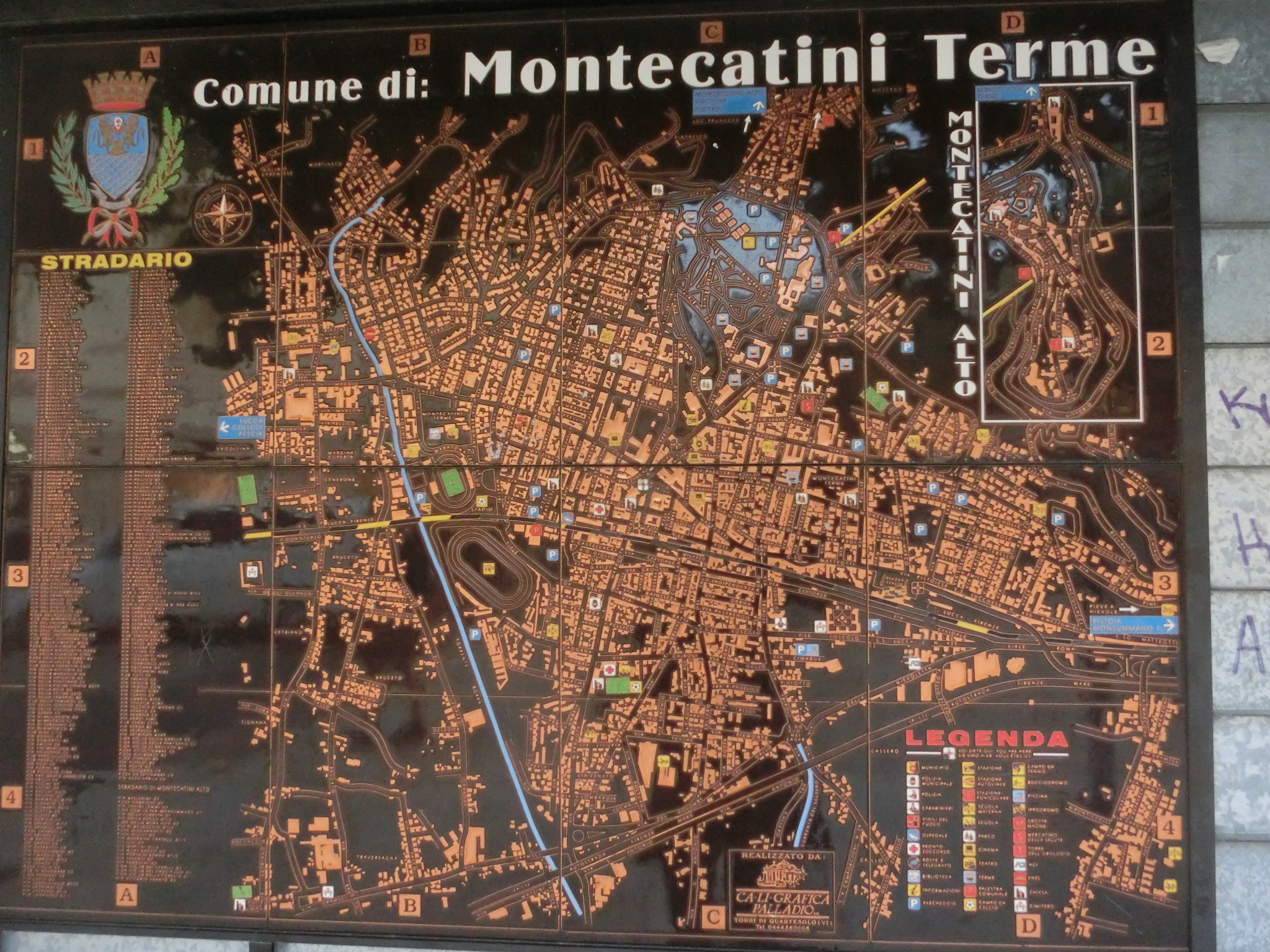 フィレンツェより直通電車で約1時間、ルッカから約30分のモンテカティー二・チェントロ駅下車、北へ徒歩20分のケーブルカーで約8分。ケーブルカーのない期間(11月~3月末)は、駅前からBlu Bus COLPI社のバスU02番で約20分(時刻表)。バスの乗り方などについては、こちらを参照ください。私はまだ行ったことないのですが、MonsumanoのGrotta Giustiというこのゾーンでは一番人気のSPA&ホテルにも、同じバス路線で行けます(アルトの町とは逆方向)。