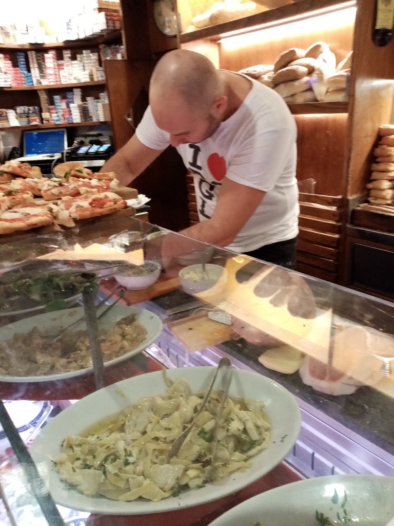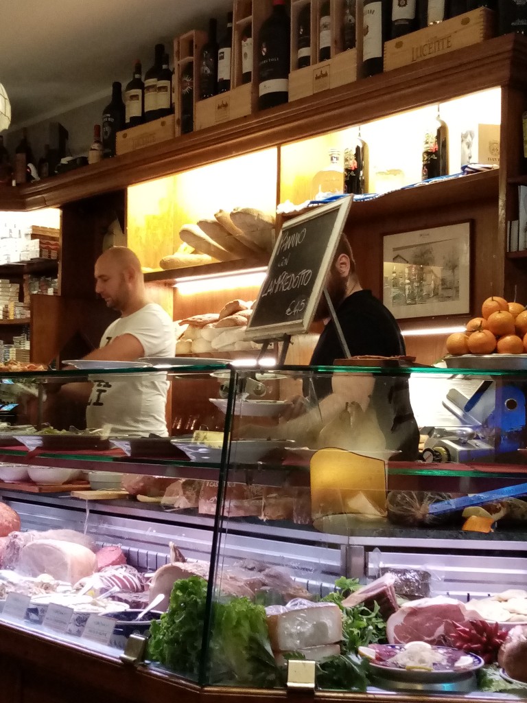 創業は1914年、親子三代で受け継がれてきた老舗であり、今も地元フィレンツェ人に愛され続けてるお店です。朝から深夜までノンストップ営業、ランチやディナーだけでなく、朝ごはんやカフェとしても使えます。今回私が行ったのは、その前のサッカークラブでの長男の試合前の14時すぎ。すでに軽くお昼を済ませていたのですが、まだ小腹が減っていたので、喜び勇んでお店に入りました。それは・・・