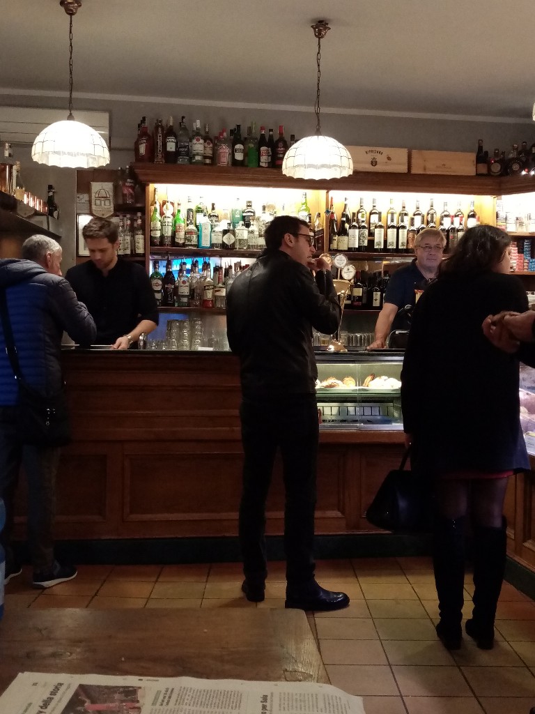 私が行った時間帯だと、多くの人は私と同じくスキアッチャータを食べる人か、おしゃべりしながらカッフェをくいっと飲んでいく地元民ばかり。ほんと、旧市街では味わえない、昔ながらの古き良きフィレンツェのバールって感じがとっても良い!!