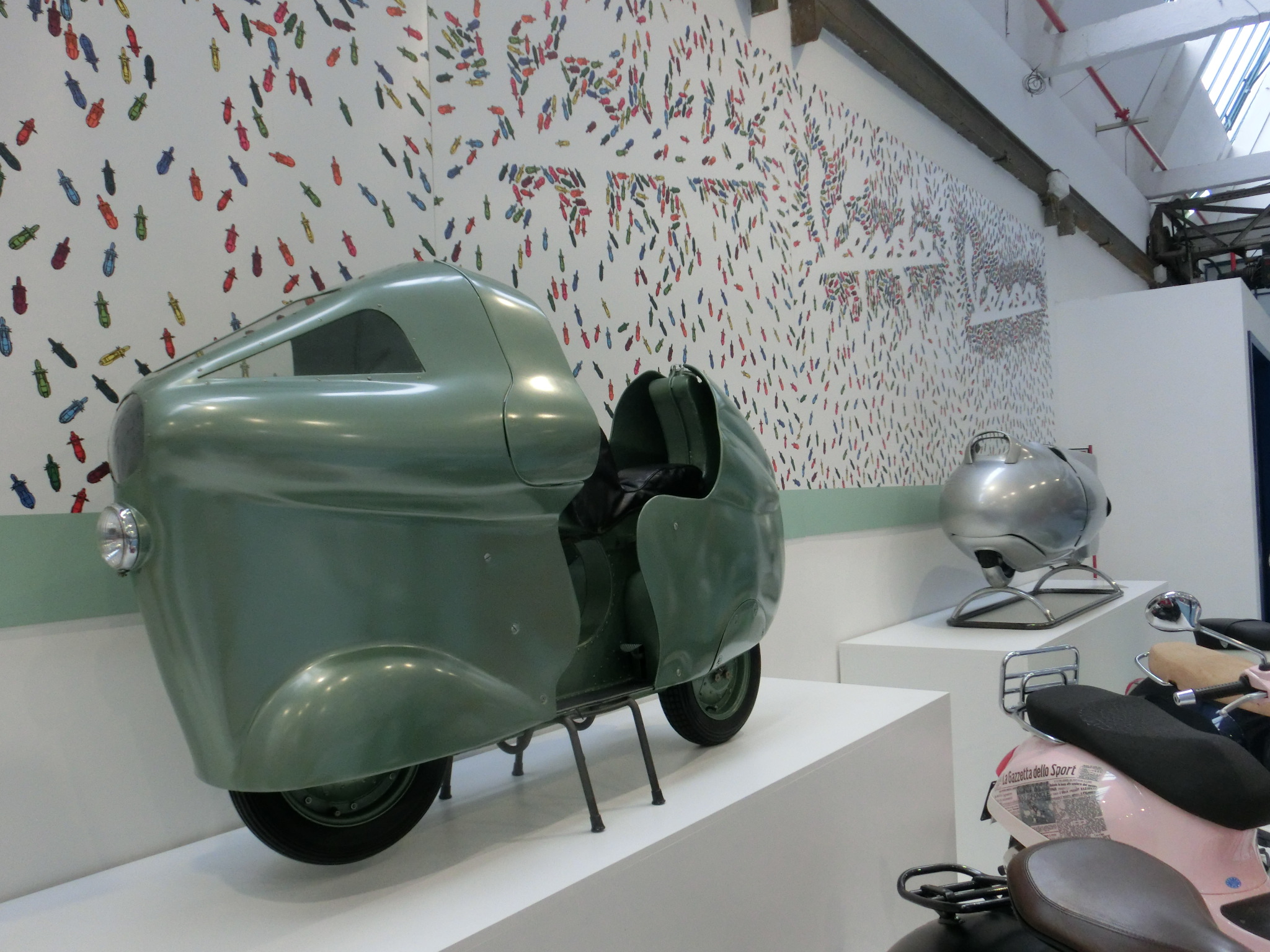 エントランスに入ると大きく2つに分かれ、左側入ってすぐは特別展。私たちが訪問した時には、FUORI PORTAというヴェスパとイタリアの食を絡めた展示が行われていました。
