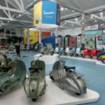 累計で70万人が訪れ、2018年にリニューアルされたばかりの博物館は、5000㎡、展示はなんと250台!二輪の博物館ではイタリアいちの規模を誇っています。しかし、門をくぐってすぐにはプロペラ機、そしてエントランスには電車?というのも、ピアッジョ創業はジェノヴァ、オートバイでなく船舶・鉄道関係から始まったのですが、第一次世界大戦頃から航空機分野にも参入しピサ近郊に拠点を置いたのです。それが現在のピアッジョの始まりで、第二次世界大戦後にエンリーコ・ピアッジョのもと、かのヴェスパが誕生するのです。