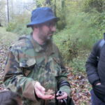 当然私有地なので、他人の進入禁止!!ラッファエレか、彼が許可を出した人しか入れないし、当然トリュフ狩りもできません。こうして一般の方とトリュフ狩りをすることはもちろん、採れたトリュフを販売しているので、他人に採られたりしたらたまったものじゃありませんよね。写真はコラボしているトリュフ狩人のアレッサンドロ。愛犬のシンミアと一緒に、私たちも森に入ります。