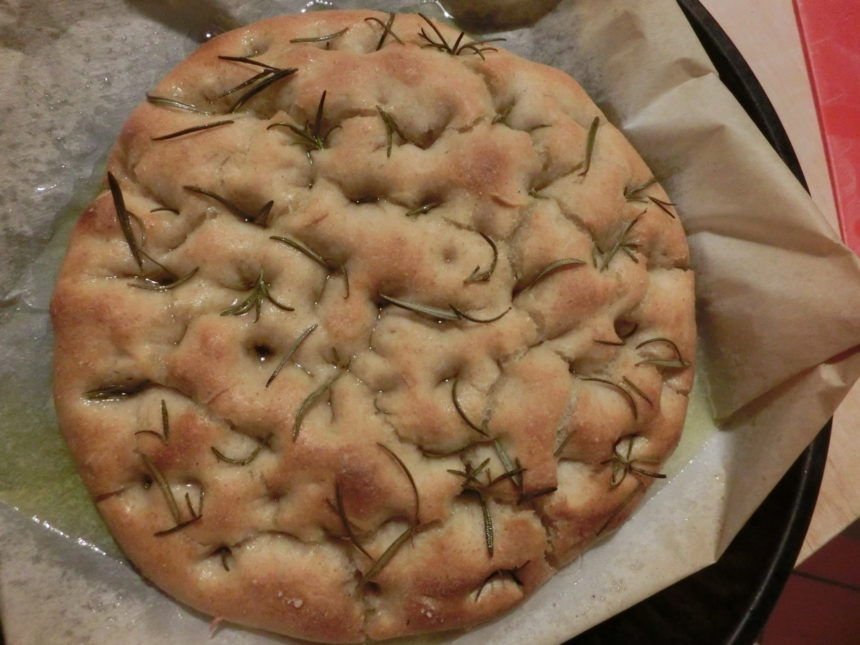名前の由来は、まさにこの作業から・・・Schiacciare = 押す、の動詞の過去分詞から、Schiacciata。こうして指で押して広がったら、塩とローズマリー、オリーブオイルをかけてオーブンへ!