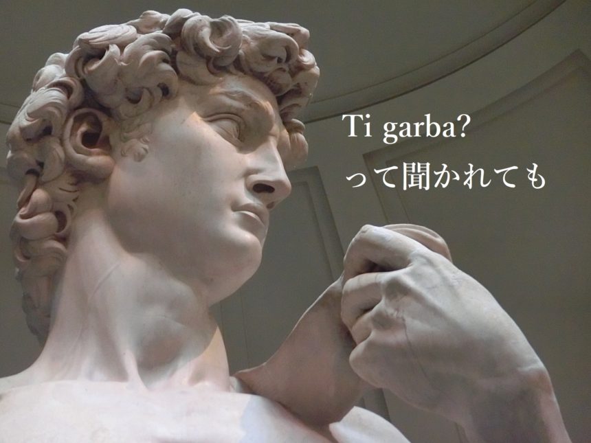 ・・・Σ( ̄ロ ̄lll)ガーン 何言ってるか分からない!!!!今ではこう書けるけど、当時は一語なのか二語なのかも分からん、そもそもばーちゃんのシワガレ声だから、明瞭でないし・・・固まってる私にダンナが助け船を出してくれ「Ti piace?」と言い換えて聞いてくれた。慌てて「Si, si…(う、うん・・・!)」と答えたものも、そんな単語見たことも聞いたこともないぞ!Ti piace =あなたは好き?、がTi garba 、ってことは動詞はgarbare(ガルバーレ)・・・辞書には一応載っていましたが、でもやはりフィレンツェ・トスカーナの方言のようです。