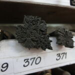 文字もフォント違いがたくさんあり、それをサイズの合う型に一文字づつはめこんでいきます。それを程よく熱したら