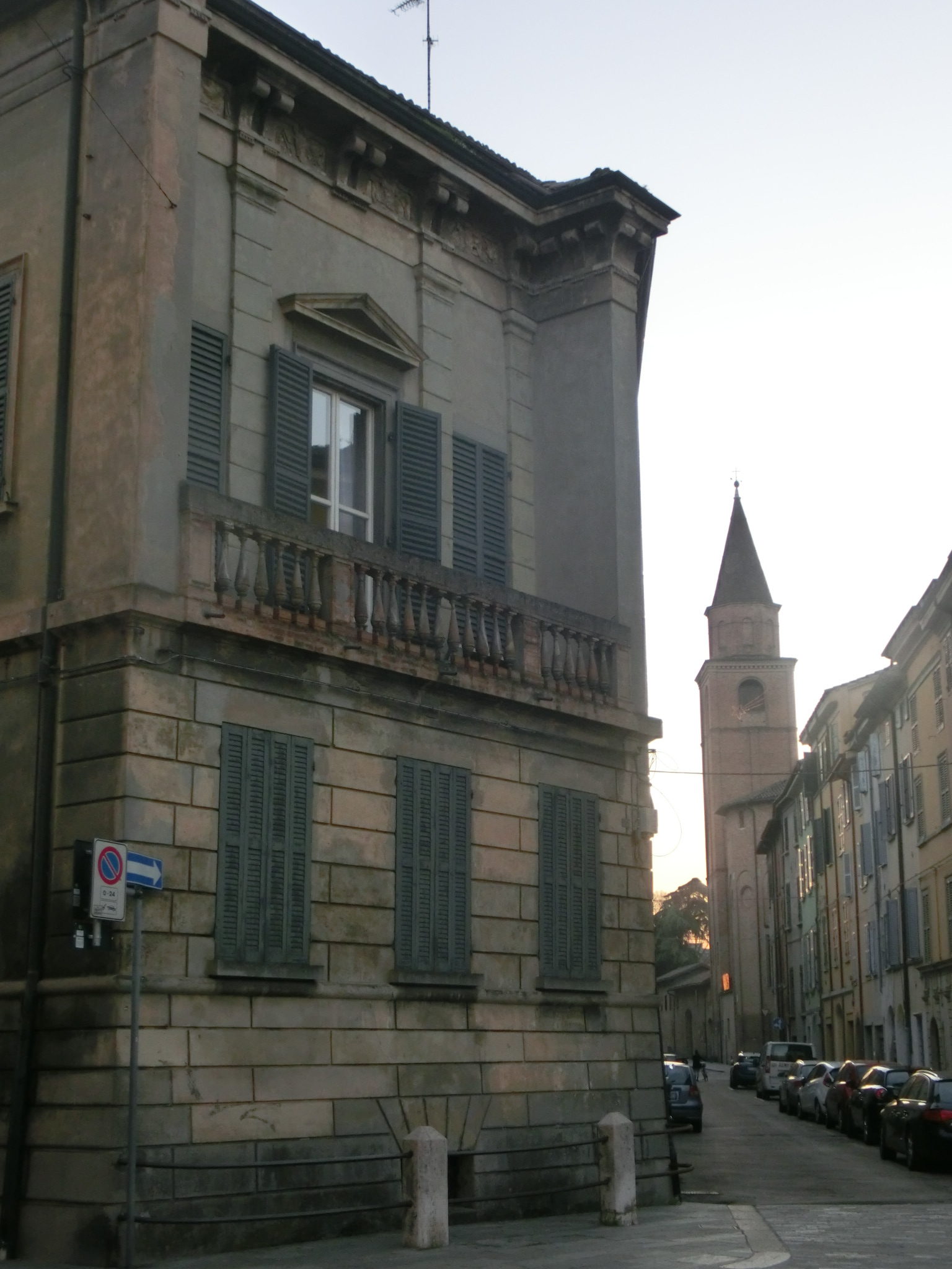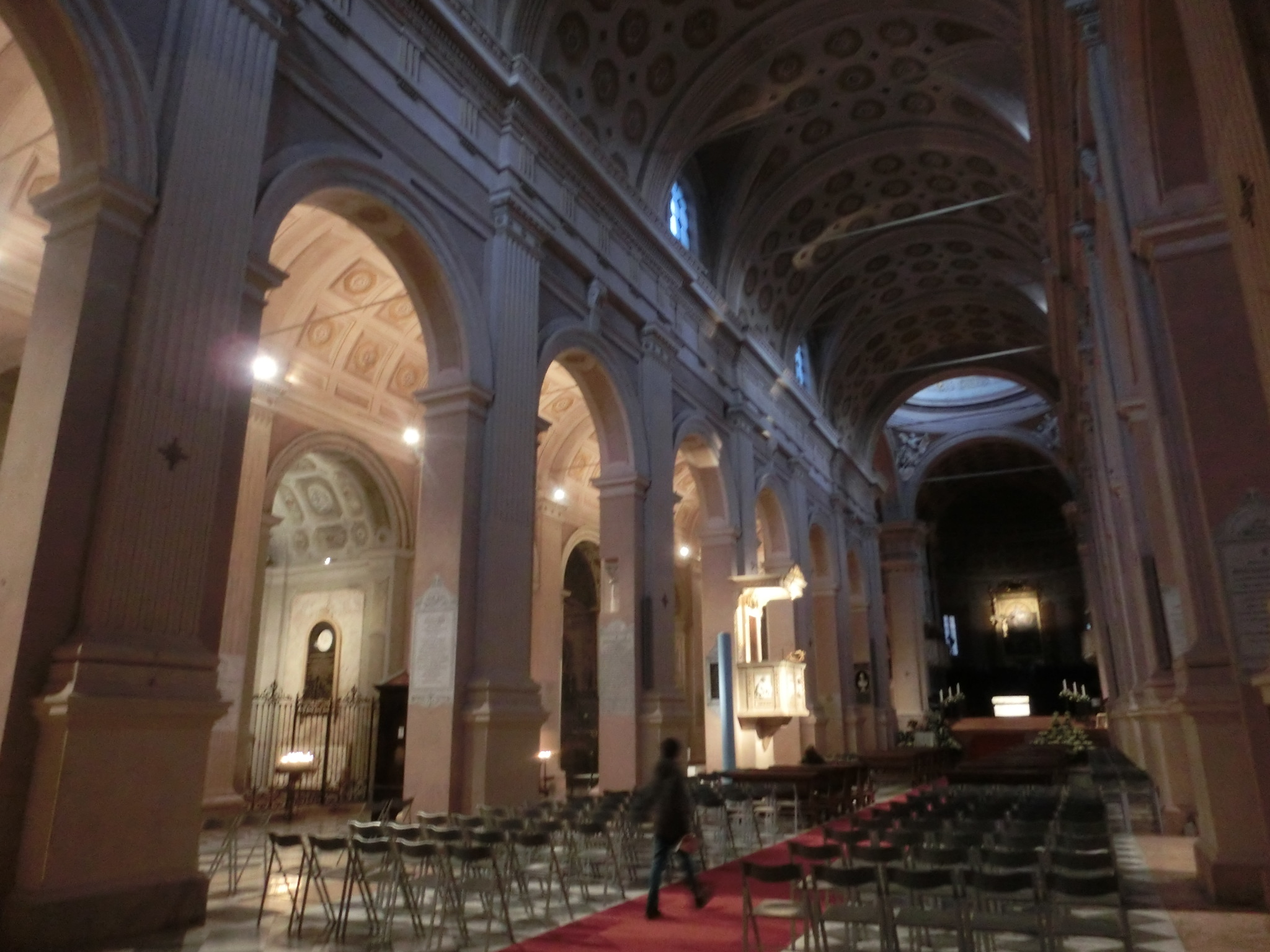 さて私たちですが、ホテルのスタッフに書いたもらった散策ルートを地図で追いながら観光しました。三角形のヴィンチェンツォ・ジョベルティ広場から南へすぐ、ギアーラ大聖堂に到着します。1596年に聴覚障害の青年が聖母の絵画に祈っている際に声を聴いたことがきっかけで、翌年に建設開始。祭壇周りのエミリア派画家たちのフレスコ画が見どころがそうですが・・・私たちは行った時は昼休みでしまっていたので、レッジョに行かれる方はこちらから開いている日時をチェックしてからぜひお出かけください。