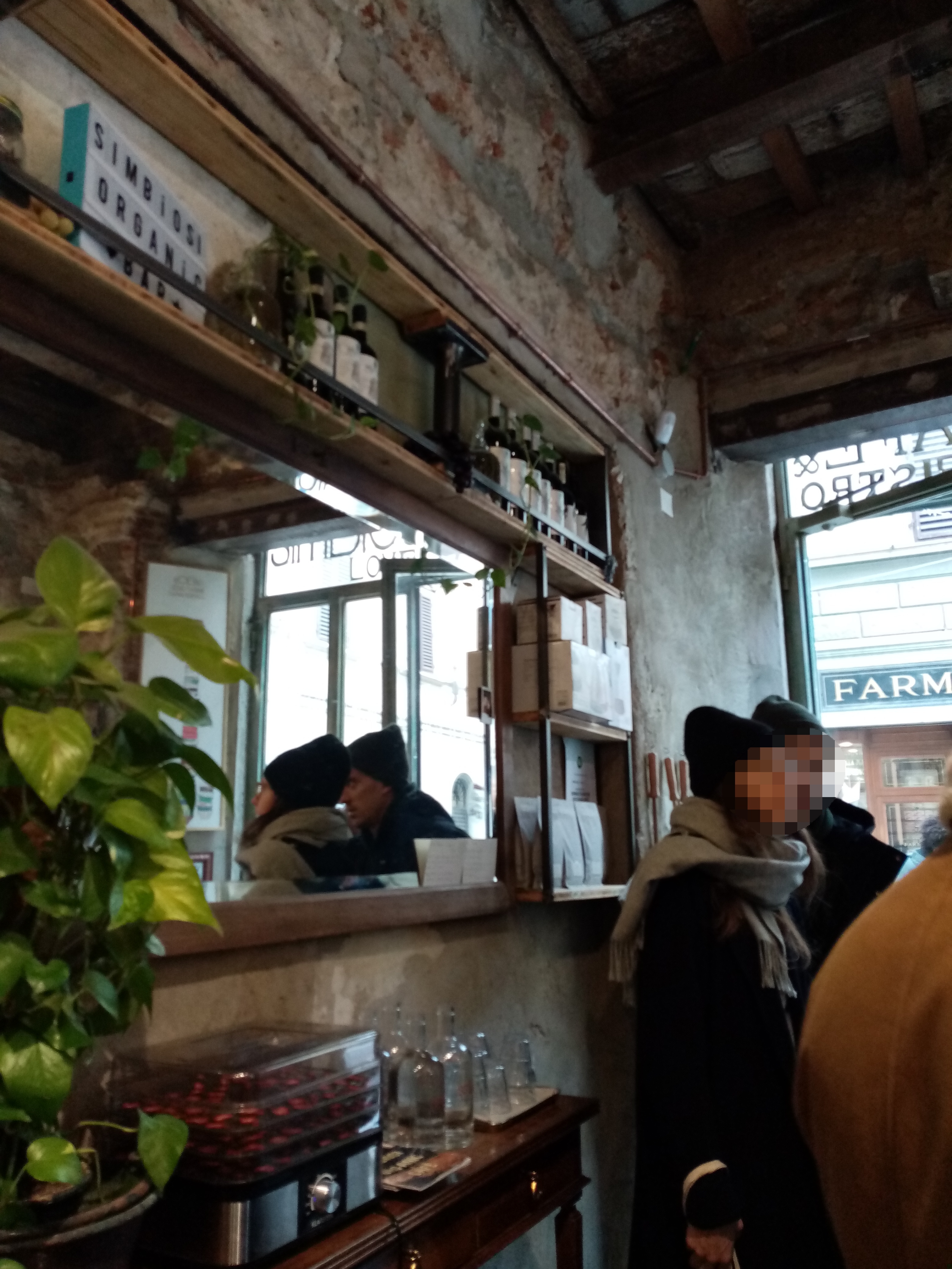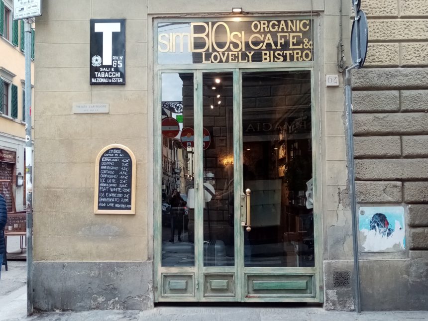 前々から気になっていたオーガニックのピッツェリア&パスタ専門店・Simbiosi。その更に横のかどっこに、今度はバールができていたので、通りがかった時に入ってみました。それもそのはず、オープンは2018年11月。その3年前にピッツェリア、そしてパスタ屋さんができたSimbiosiですが、オーガニックブームとは言え、立て続けに3店舗も開けているなんてすごいですね~。とはいえ、観光客がにぎわうエリアからは少しはずれるので、とても落ち着いた雰囲気で、私が行った時は全員イタリア人、いや、しゃべってる感じからして皆フィレンツェ人。しかも常連さんも多そうで、カウンターでおしゃべりしながらクイっとエスプレッソを飲んで出ていく人も多し=ええ感じの昔ながらのバールです。