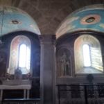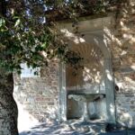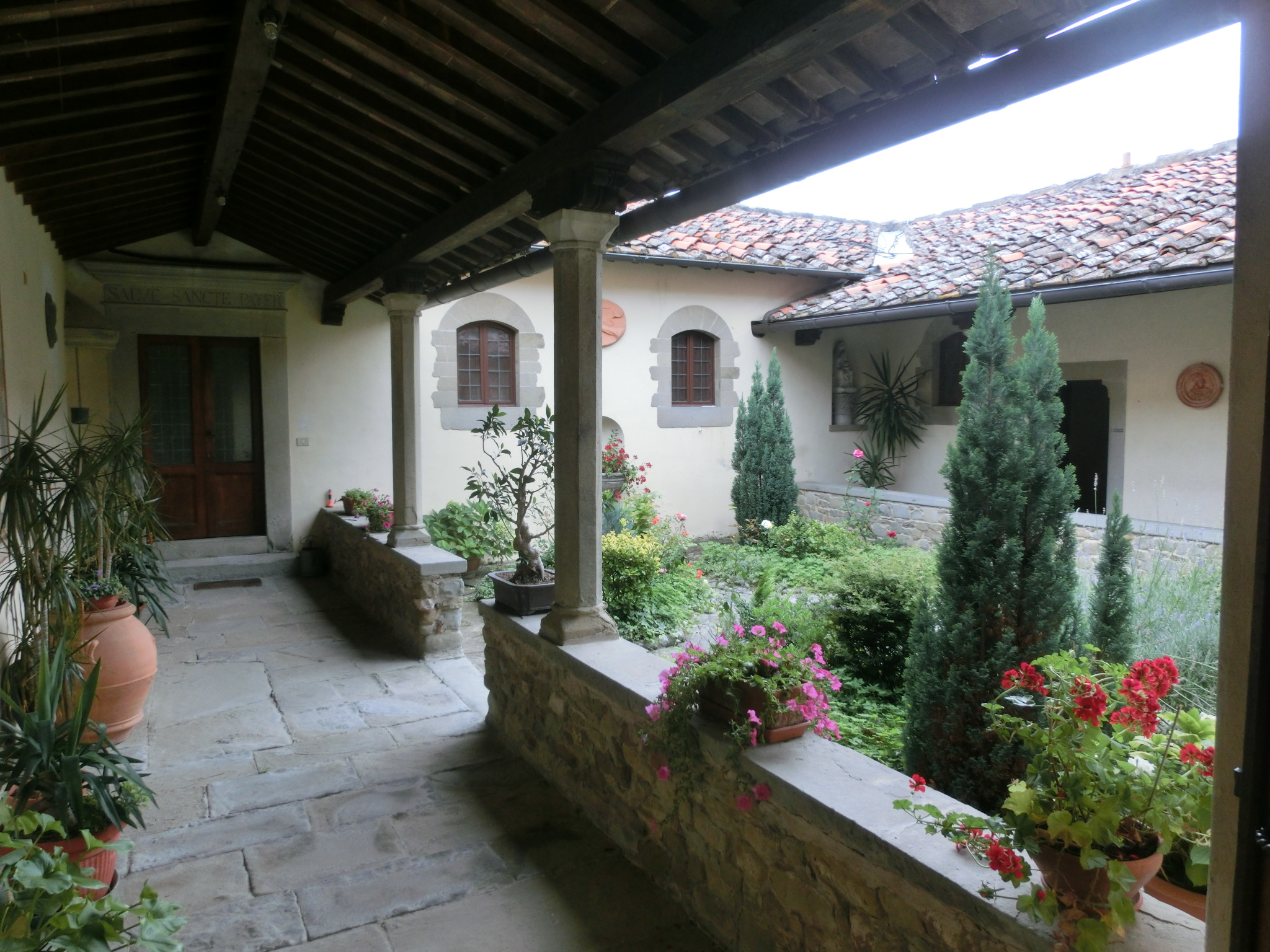 ここはフィレーゾレでも一番高い場所で、元々はエトルリア人のアクロポリスがあったところ。その後ローマ人の要塞ができますがフィレンツェ共和国によって破壊され、現在の修道院は1225年に建設された小さな修道院が起源。1390年ころから拡張し、フランチェスコ会の修道士用の修道院として活動しています。開いている時間が少ないようで、なかなか教会や奥まで入ることができませんが、教会入り口上にあるフレスコ画や、右の入り口からかわいらしい中庭を見ることができます。