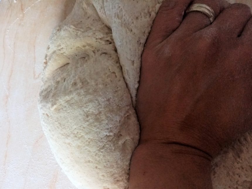 我が家の天然酵母は安定していて、焼いた後の種はこんな感じで一晩で倍のかさに。今は家族全員で毎日家でごはんのため、焼く回数も増えてますが、1週間に1回焼いてるだけ=種も1週間でしぼんでしまうのですが、焼く前日に餌付け(小麦粉、水、はちみつ)を少量づつ入れてゆっくり混ぜておくと、翌朝に瓶のふたを開けると「プシュッ」と音がなるほど発酵してくれているのです。そして、1次発酵させて、台の上で生地をこねていると・・・こねている間、どんどんと酵母の力がまた倍増するかのごとく、手に反発がくるんですね。モフ、モフ、モフ・・・この時間、手の感触、酵母ちゃんとの対話がたまらないのです。1時間でも続けていられそうなほど。