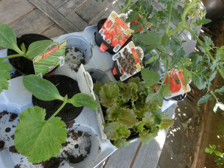 ズッキーニとサラダ菜を。ホントはサラダ菜も4株くらいでいいか、と思っていたのに9株セットしかなく、結局、トマト類はここに入らず!!とことん、素人な私たちですが、プランターはいっぱい余ってたので、トマト4苗はプランターに。