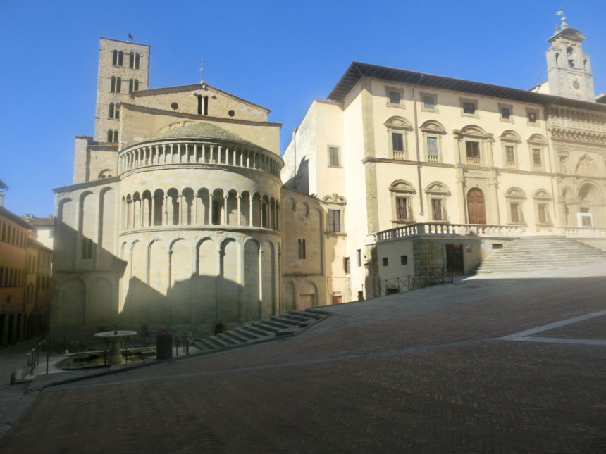 も~紹介するまでもなく、名画中の名画、ロベルト・ベニーニの「(原題)La vita e’ bella」。ナチにとらえられる前までは、アレッツォを舞台にしており、アレッツォ駅前には撮影ポイントマップが、各場面が撮影された場所には看板までたっています。