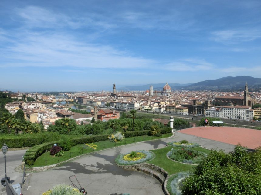 ロックダウン大幅緩和になってから、初めての週末。フィレンツェのマンマのところにランチに行ってきました。数えてみると、最後に日本語学校があった2月29日以来、84日ぶりのフィレンツェでした・・・というか、私は84日ぶりにおらが村から出たという!!旧市街で買いたいものもあったので、私だけ1人で先に車で降ろしてもらうのですが、予定を変更して、ミケランジェロ広場に降ろしてもらいました。だって、私が「フィレンツェに一度でいいから住みたい!」って25年前に思わせてくれた思い出の場所だから、ここから始めたかったのです。いつもなら5月は観光は超ハイシーズン、観光のみならずウェディング撮影も多くて、ウェディングフォトでは絶対はずせないミケランジェロ広場のこのテラスが・・・いつもなら撮影場所の取り合いなのに、ほぼ貸し切り!