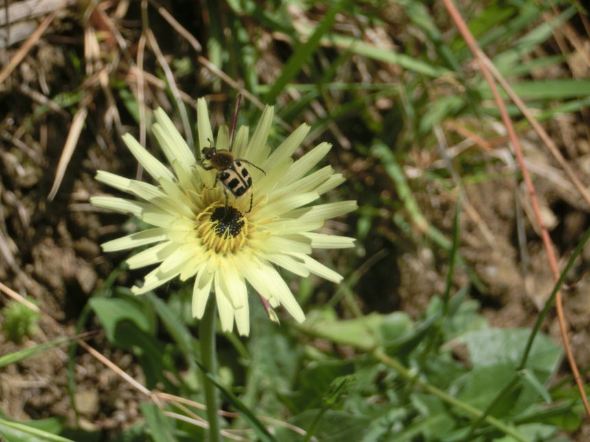 名前が面白いのがコチラ、その名も「モモブトカミキリモドキ」。これは田舎暮らしコミュニティに投稿して盛り上がった子なんですが、メンバーの方が教えてくれました。この名前から推測されるイタリア語キーワード、学術名からも調べてみましたが、イタリア語名は分からず・・・でもすんごいインパクトの虫!