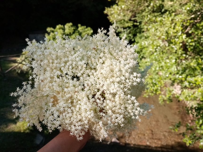 2年前からやりたいことがありました。でも、気になりながらも、いつもやり逃していました。季節ものなので、時期を逃すと1年後になってしまう・・・それは、「エルダーフラワーシロップ」。季節ものなので、時期を逃すと1年後になってしまう・・これを知ったのは、もう5年くらい前?アントネッラのアグリツーリズモに行った時。確か季節は今頃、もうかなり暑くなっていて、到着した時にこのシロップを冷たい水で割ったものが出てきたのですが・・・「何、コレ!?美味しい!!」と超感動!