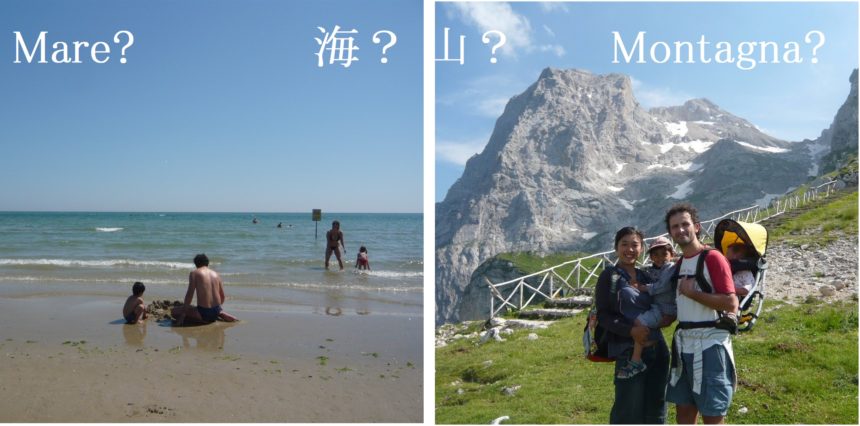 これは長男2才10か月、次男1才なり立て、の2010年の旅。なので海の条件は何よりも「砂浜・遠浅のファミリービーチ」ということで、Roseto di Abruzzoというところを選びました。子供が小さいのもあり、ビーチに徒歩ですぐ&3食付きのホテルで、1週間ただただビーチ!の超イタリアンバカンスなので、ここは日本から来る方には物足りないかもしれません💦