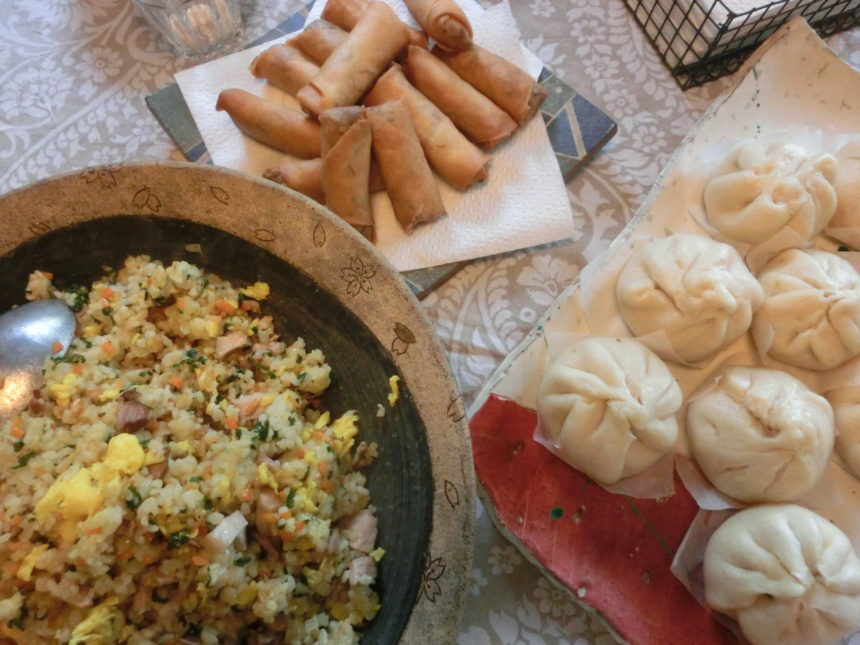 朝も早くから千穂さん宅に行き、お茶ズズっとすすりながらおしゃべりして(昨日は雨で寒かったのです)、畑見ながら畑談義して、いろんなことしゃべりながらわいわい料理して、・・・そして、ランチは中華!千穂さんのお母さん直伝の肉まん、そして春巻き、SAWAKOちゃん秘伝のチャーハン。私は生のサクランボと、サクランボジャムを使ったレアチーズケーキを持っていきました。もうこれが全部美味しすぎて、ついついいっぱい食べすぎて、晩ごはん抜くほど・・・