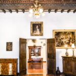 こちらが寝室と、バストイレルーム。ここも天井の装飾、バストイレを仕切るアーチなど、デザインが美しくてため息がでそう・・・このアパート空間、そして周りに広がる庭、夏はプールも、全て宿泊する1組のお客様が独占となります。お城内部の他の部屋は、希望を言えばガイド付きで案内してもらえますよ。