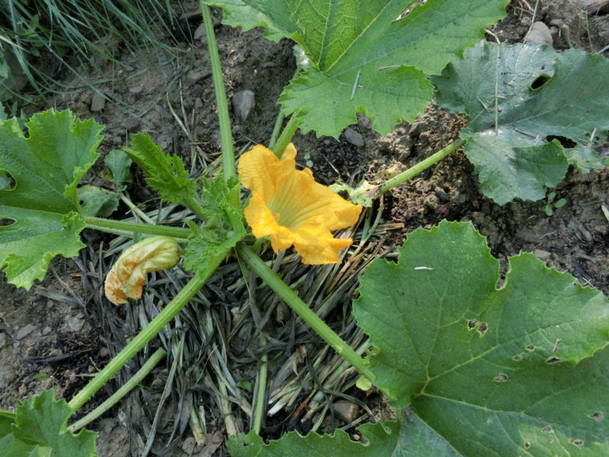 そして実がついたのだけど、「最初の1本は切って、それ以降の実を育てた方がいい」と言われたズッキーニ、まさに切った後にガンガンと成長中・・・そして花も咲いたので、とりあえず3つ収穫して定番のフライで頂きました。