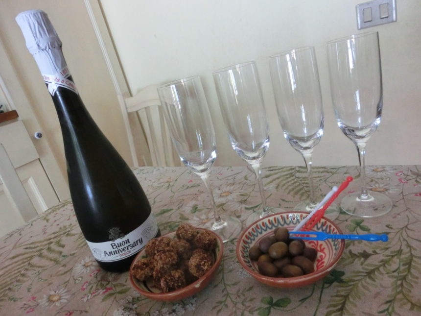 となりのエレナと息子Gくんと、テラスで一緒に乾杯!そう、やっと中学卒業資格試験の口頭試験が終わりました!