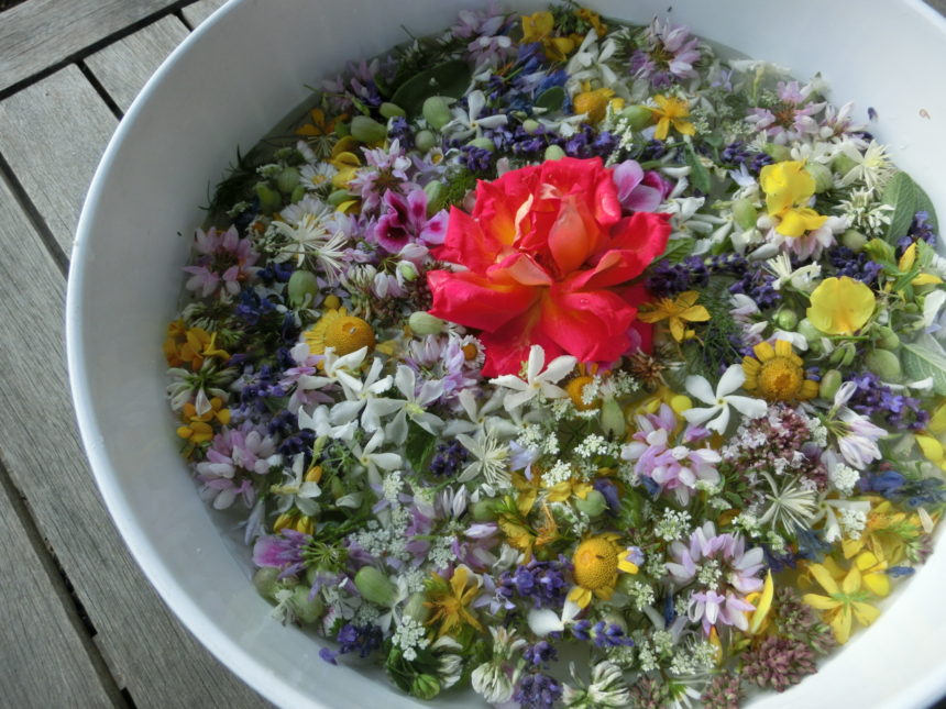 浸しておいた花を水から出して並べてみると、なんと20種!あとからバジルやローズマリーもあったな!?あ、公園にあるピンクの花も入れ忘れた!と気づいたので、来年はもっと豊かなものができそう。この花とハーブ、あまりに美しくて捨てるのがもったいないので、ドライにして瓶に入れて飾りたいと思います。