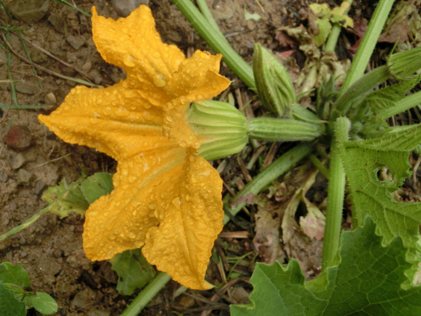 - それを朝に収穫したズッキーニの花に詰め、閉じて冷凍しておく
